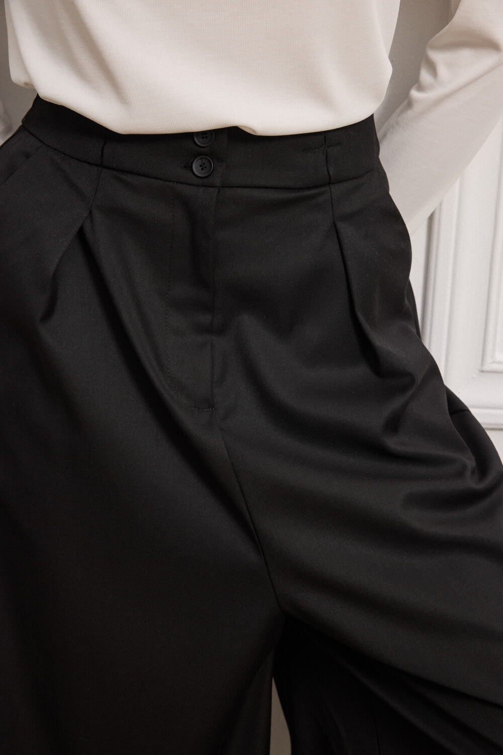 Οι πιέτες μπροστά προσδίδουν μία κομψή αίσθηση δίνοντας κίνηση,
