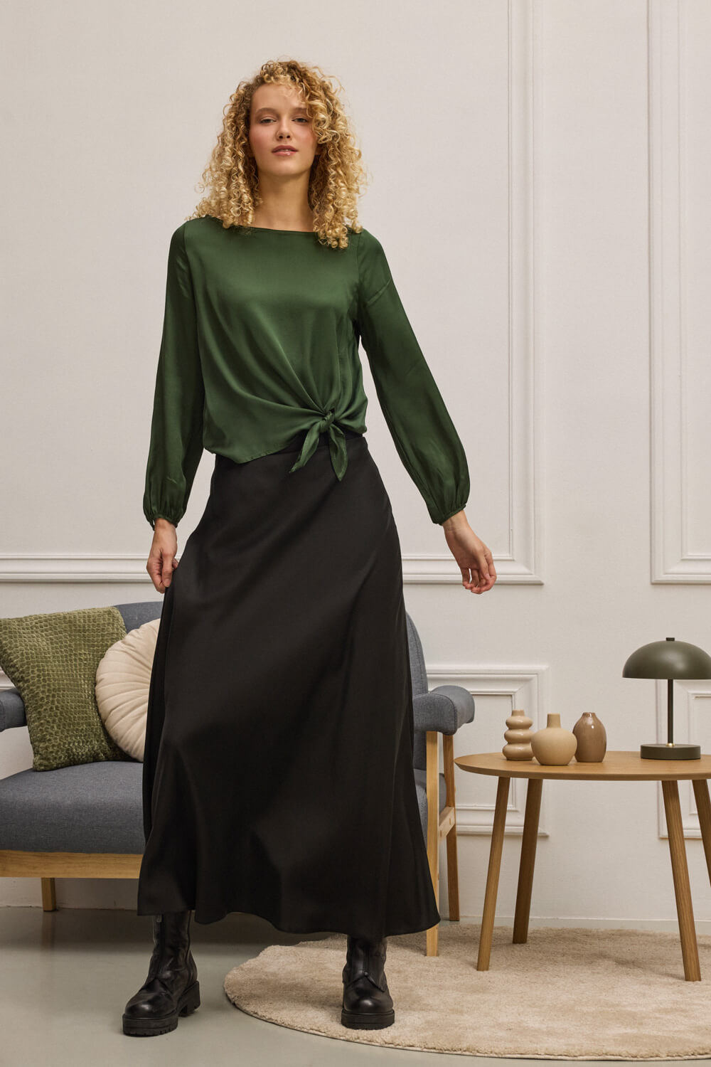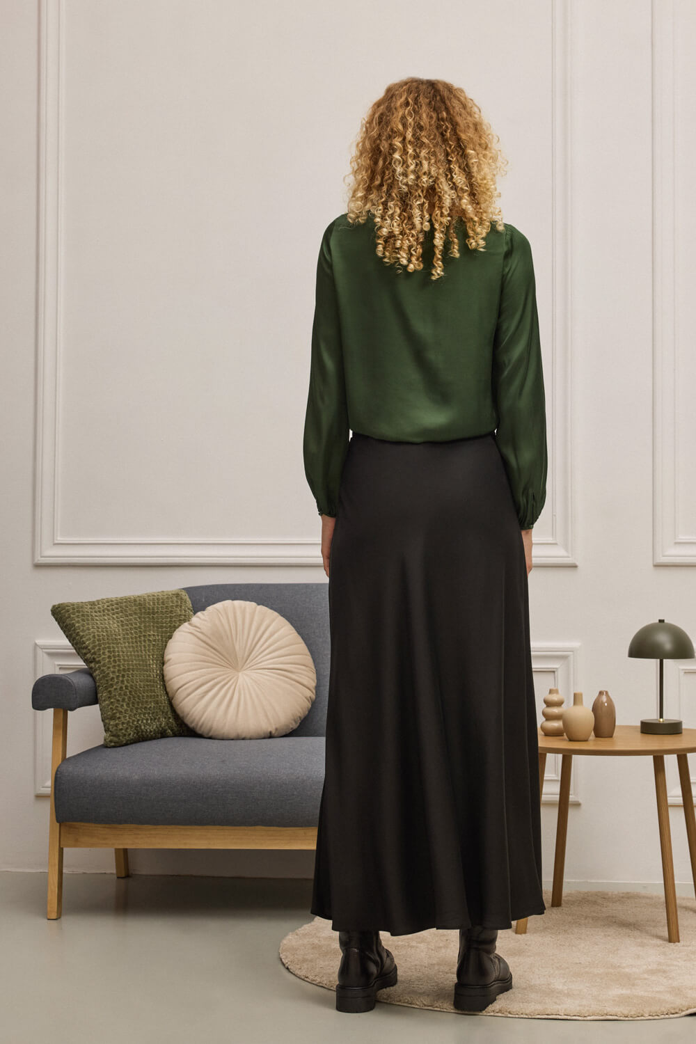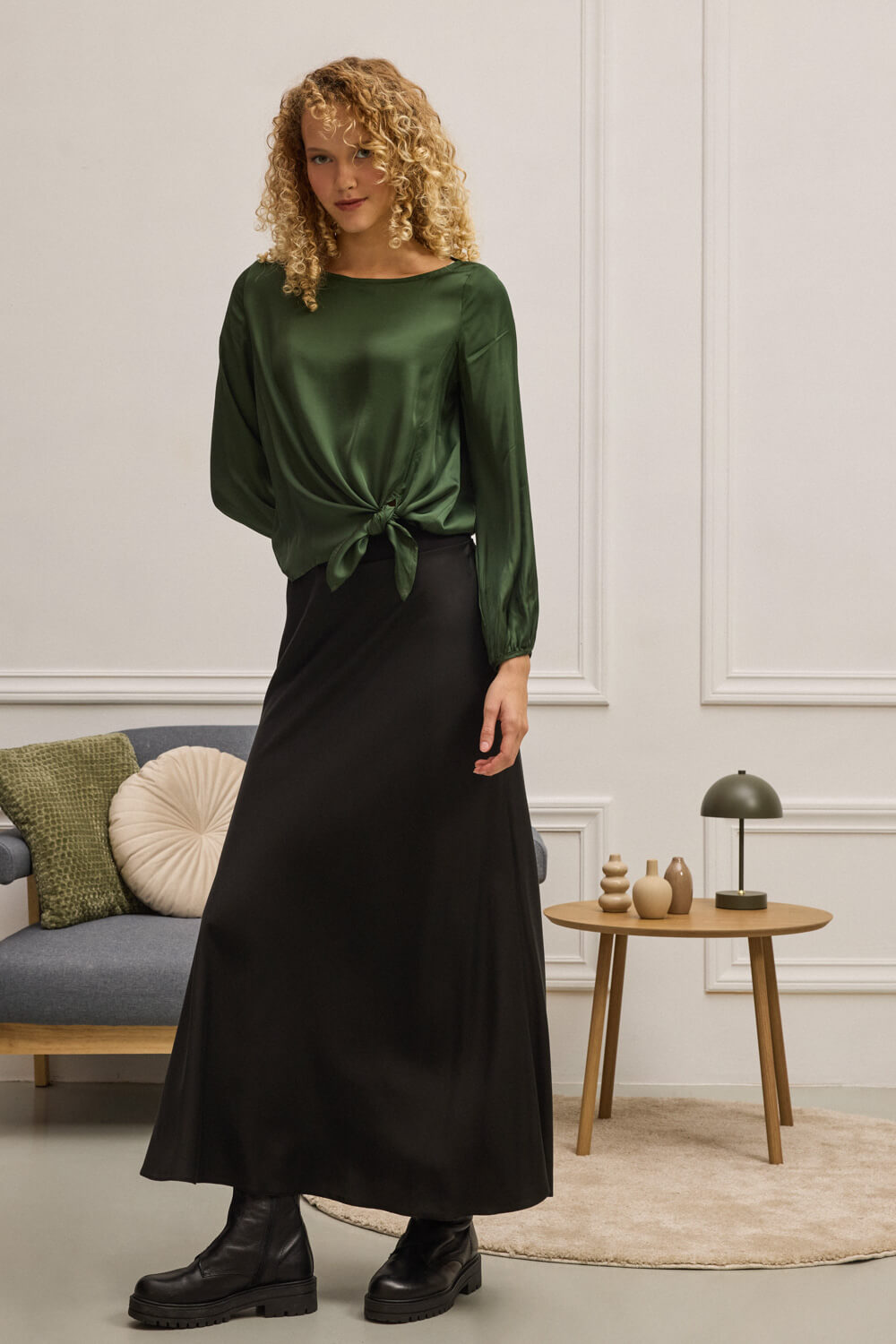 Μακριά φούστα σε ημίλοξη γραμμή με εσωτερικό λάστιχο για άνετη εφαρμογή.
