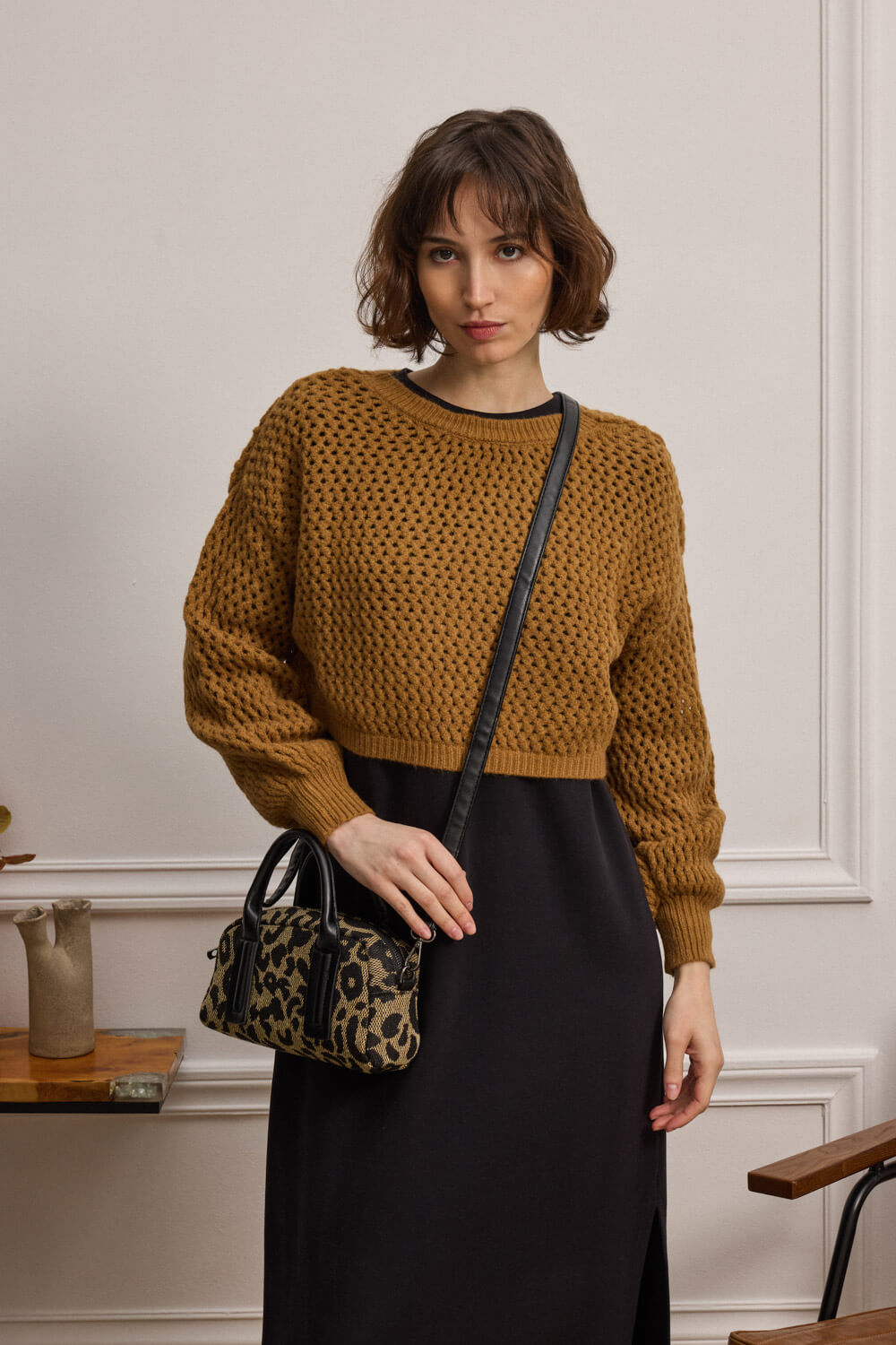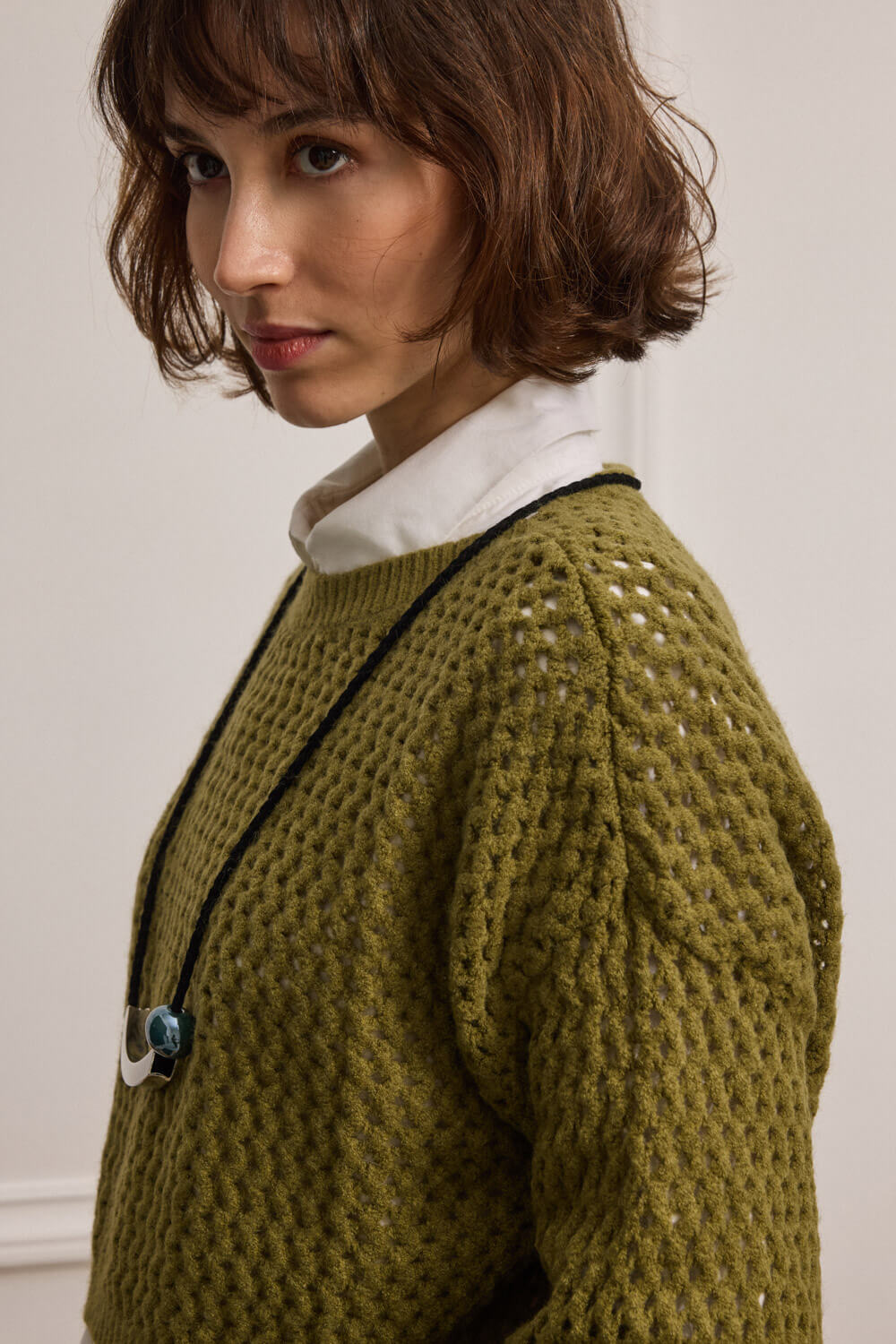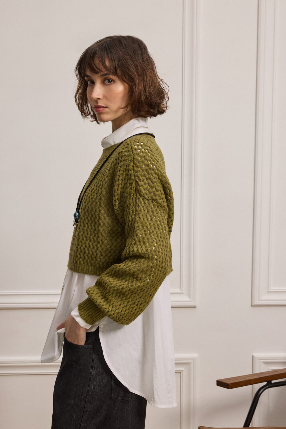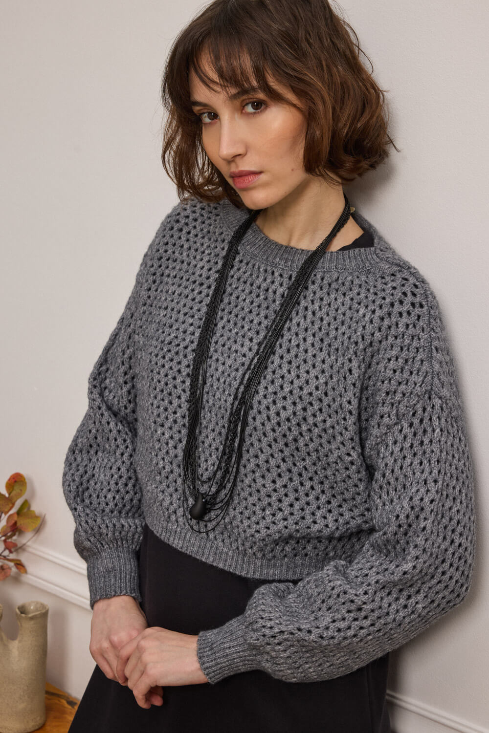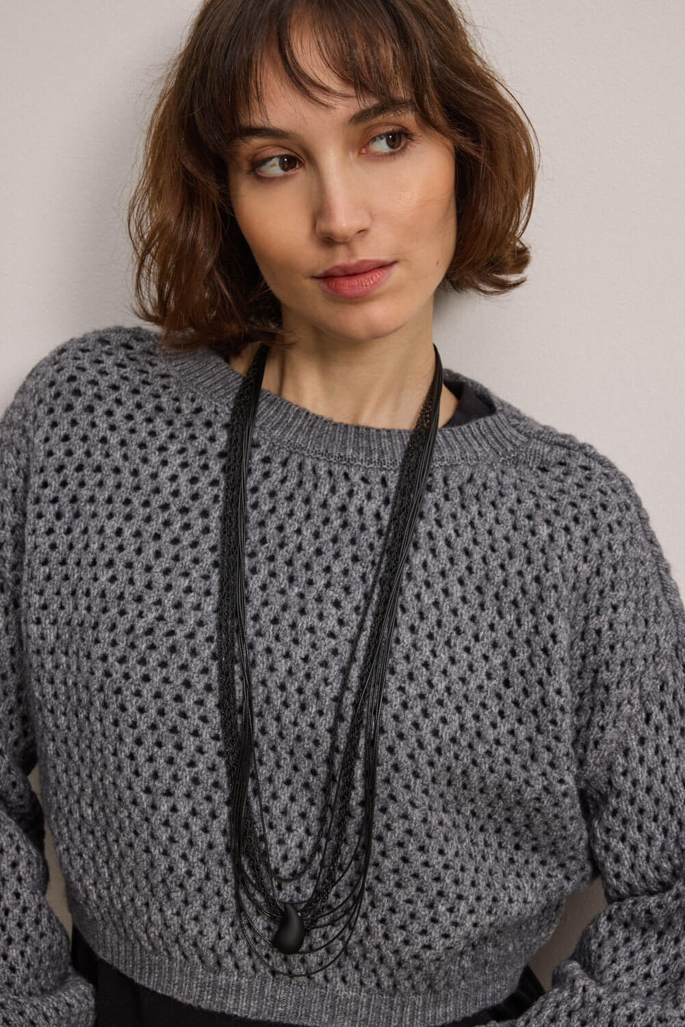 Πλεκτό Cropped Πουλόβερ με πλούσια υφή ανοιχτής πλέξης που χαρίζει ανάλαφρη διαφάνεια