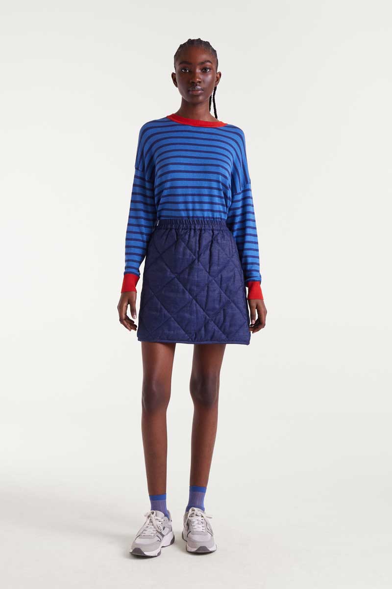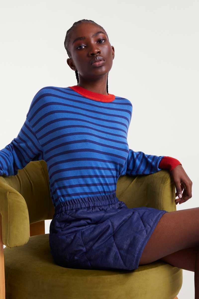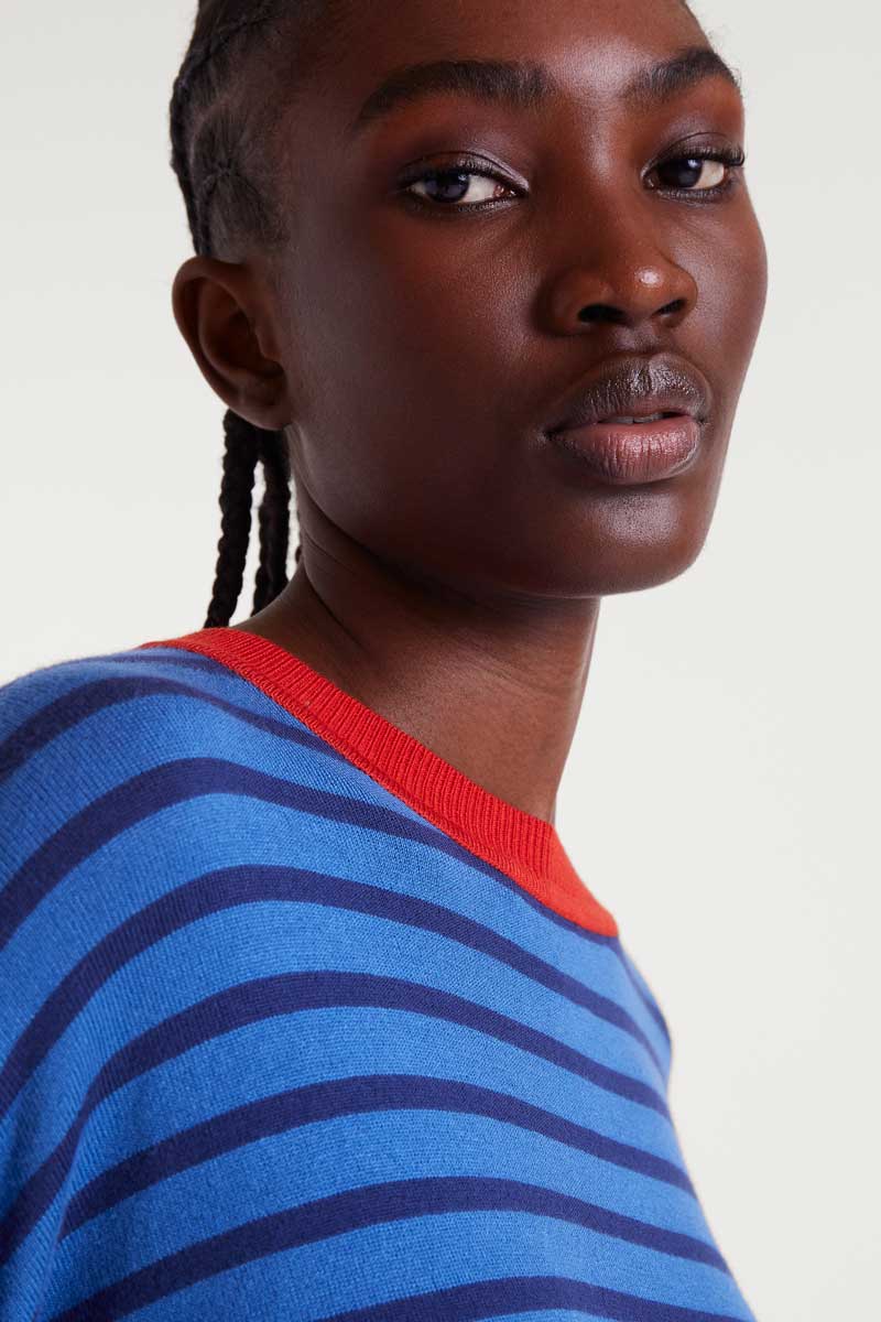 Πλεκτό πουλόβερ με μπλε ρίγες.