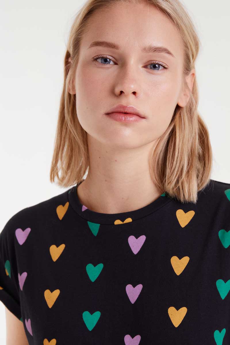 Μαύρο μπλουζάκι από 100% βαμβάκι με τύπωμα Cupid Lines. Στρογγυλή λαιμόκοψη και κοντά μανίκια με ρεβέρ.