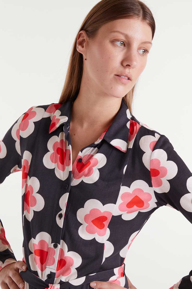 Μακρύ φόρεμα με τύπωμα Daisy και πέτο γιακά.