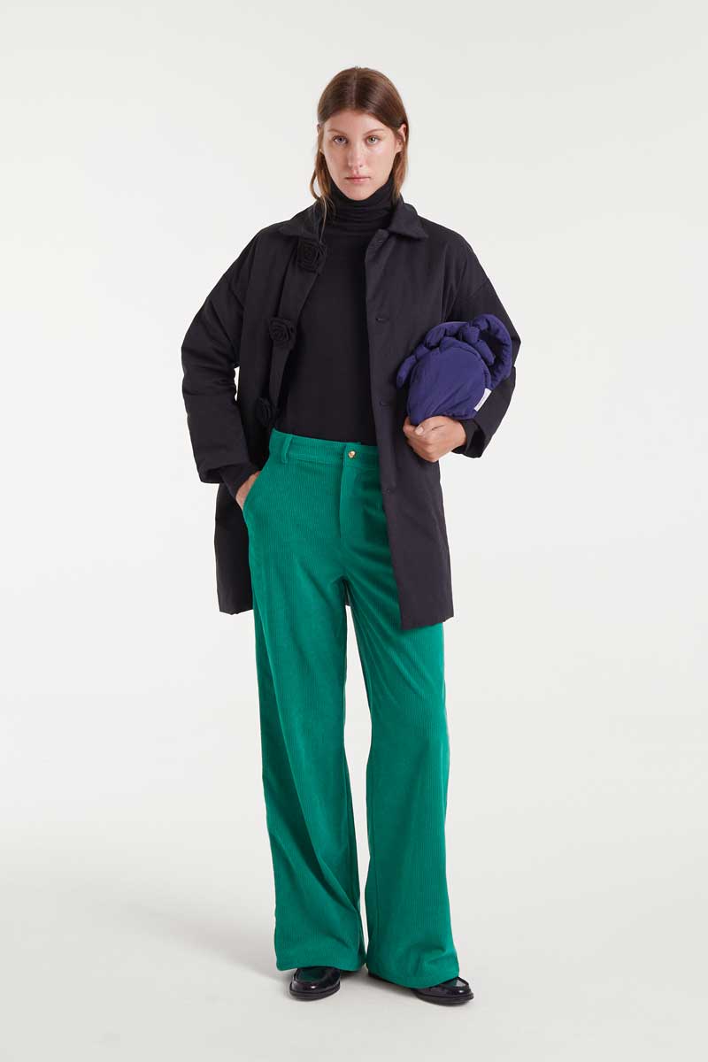 Πράσινο ψηλόμεσο κοτλέ παντελόνι σε ίσια γραμμή.