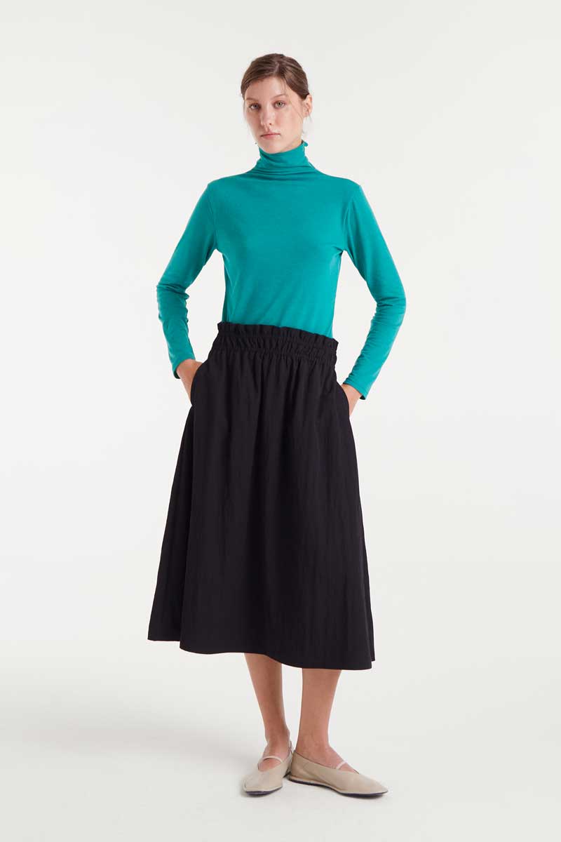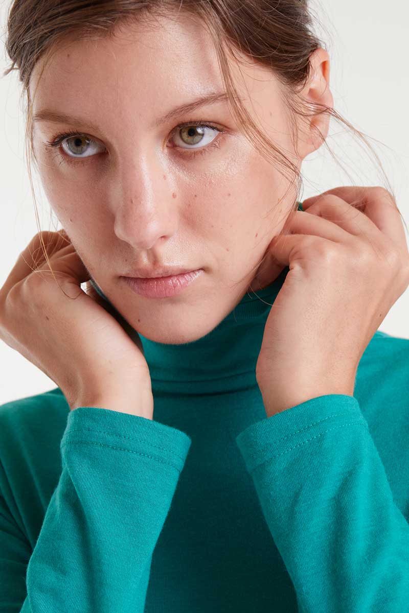 Πράσινο μπλουζάκι με ψηλό γιακά και μακριά μανίκια.