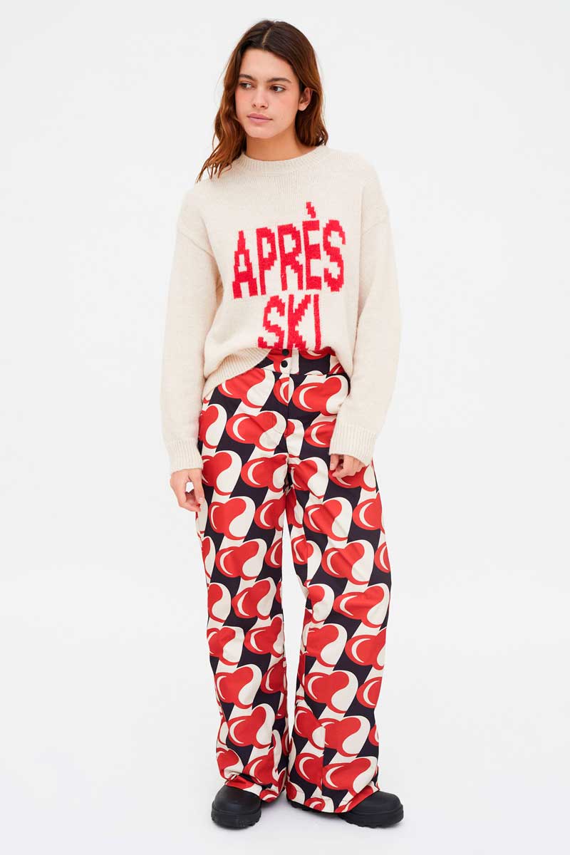 Παντελόνι σκι με στάμπα. Ρυθμιζόμενη ελαστική μέση. Ίσια μπατζάκια. Φόδρα.