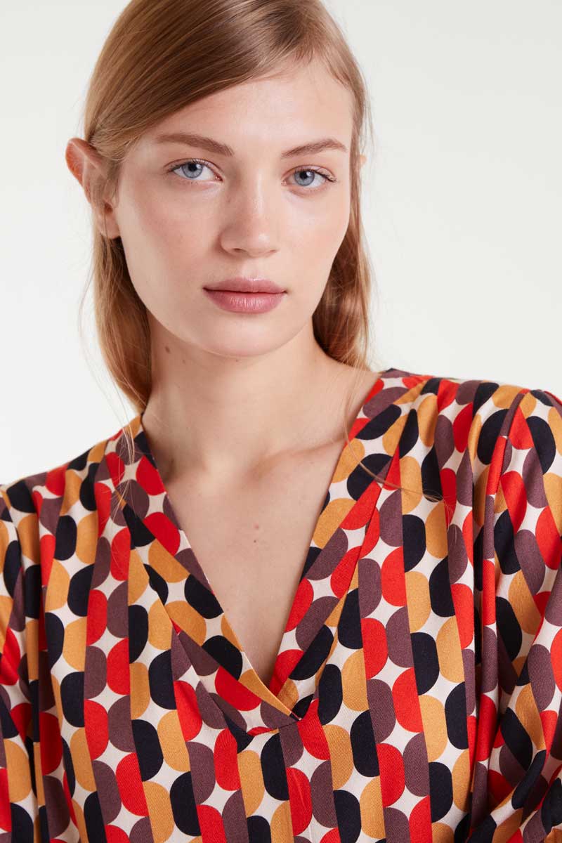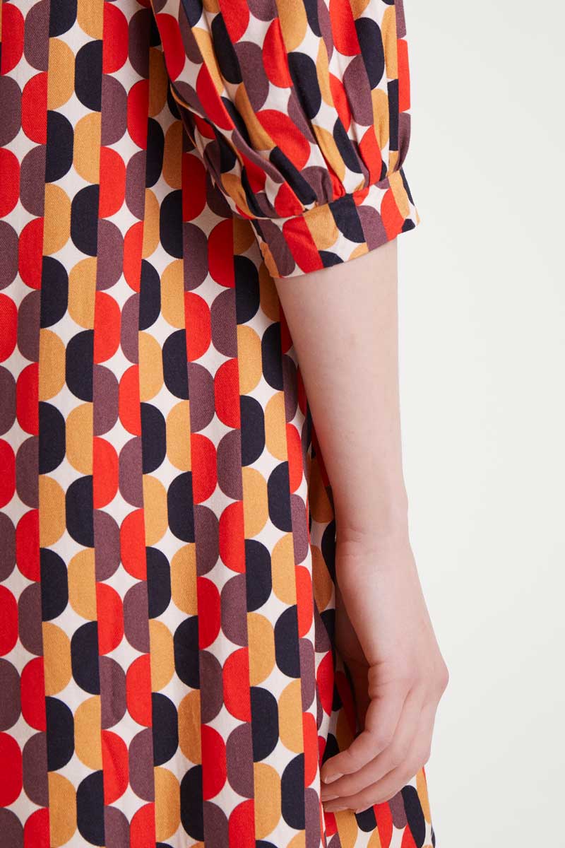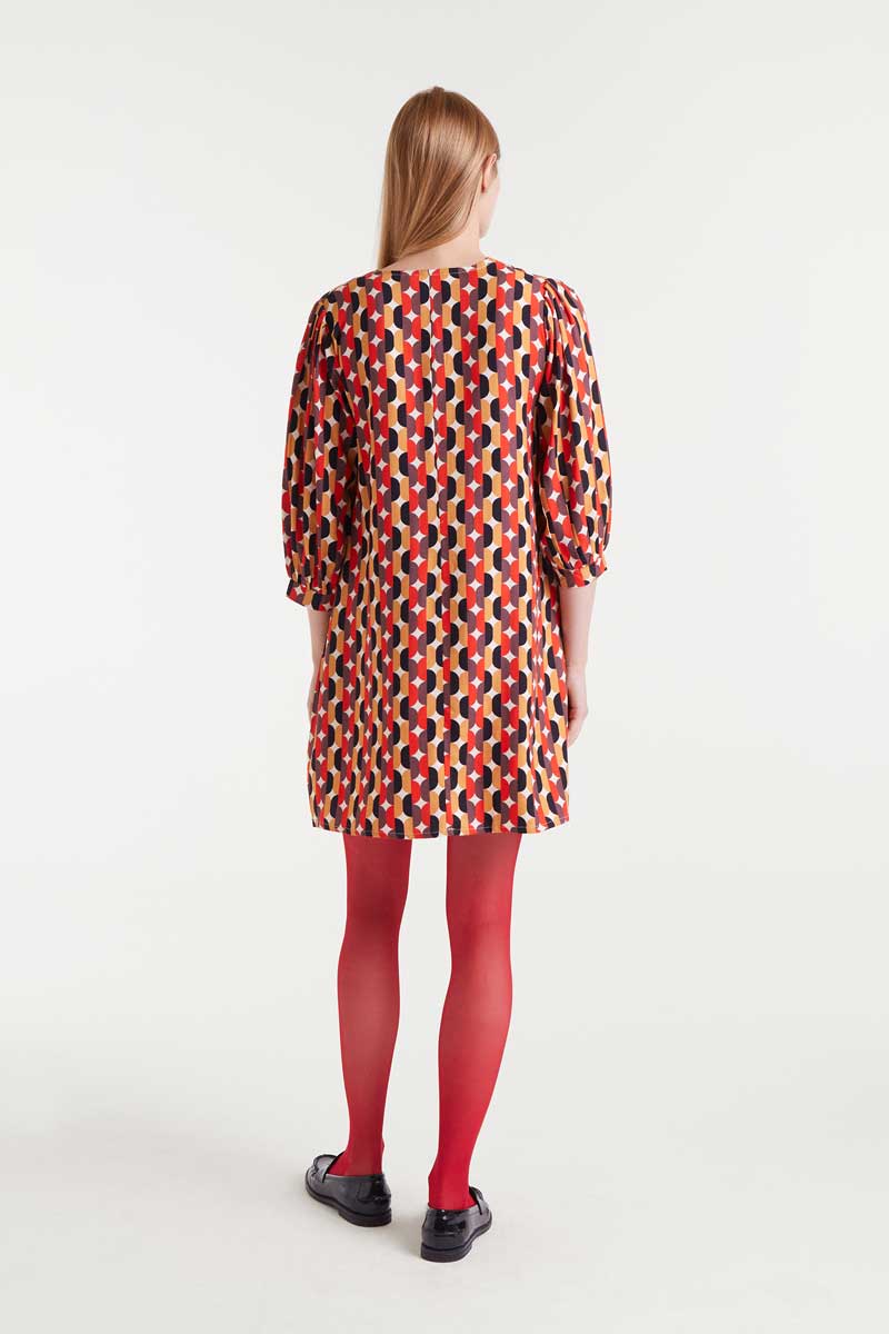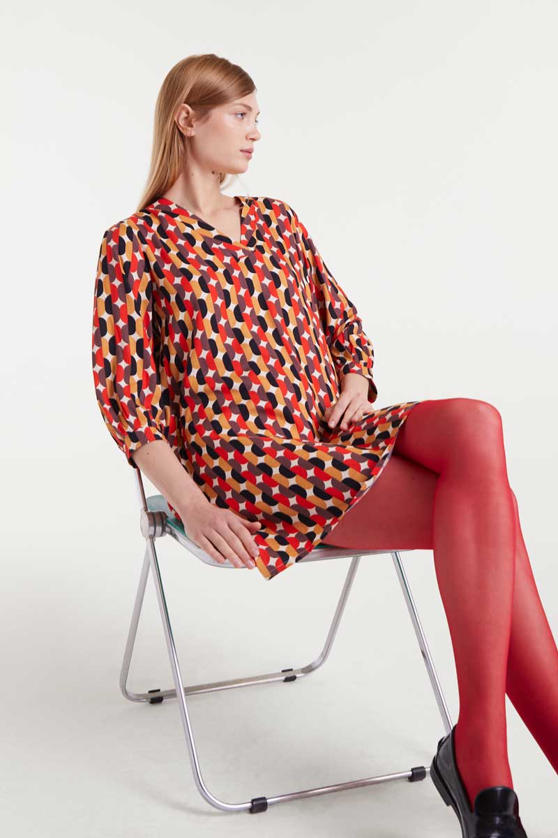 Κοντό φόρεμα με τύπωμα Link. Με V γιακά και μανίκια 3/4 με μανσέτα στο τελείωμα.