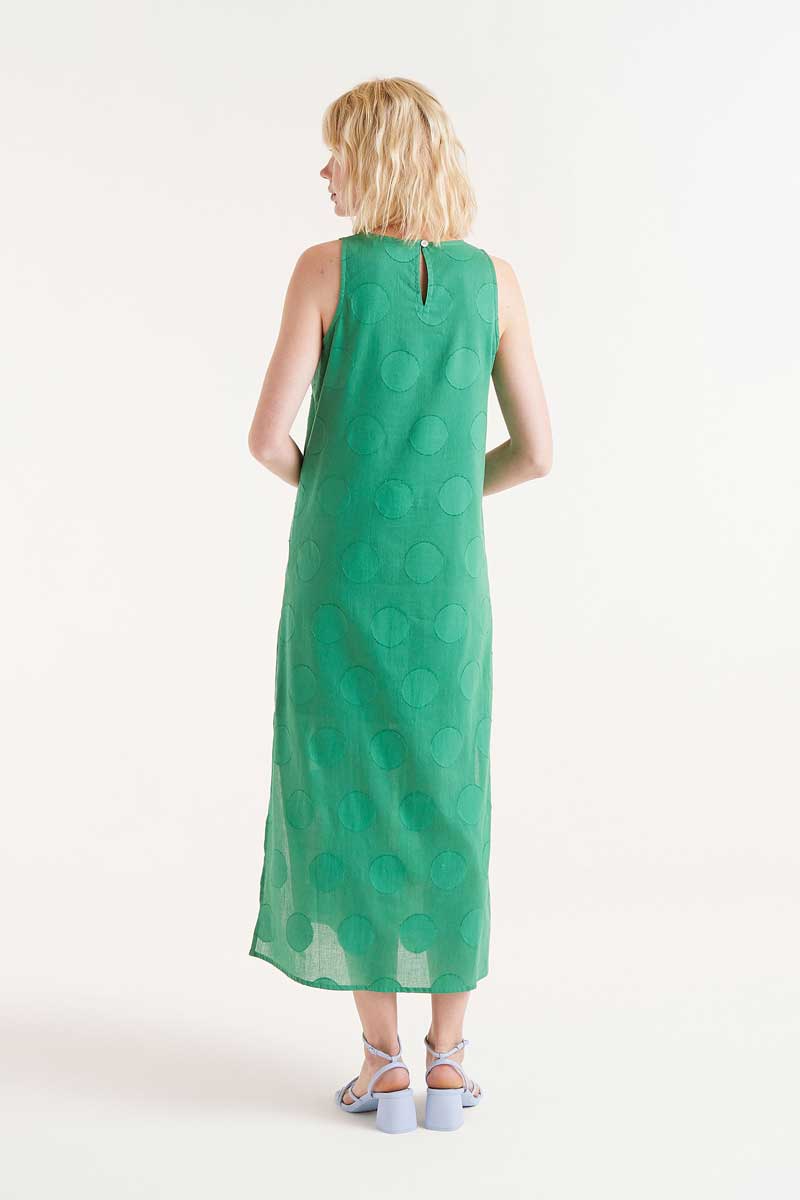 Μακρύ ζακάρ φόρεμα με στάμπα πράσινους κύκλους.