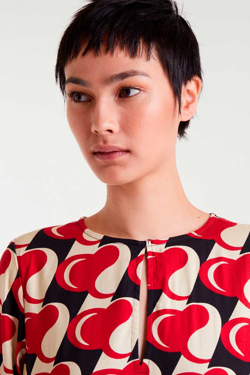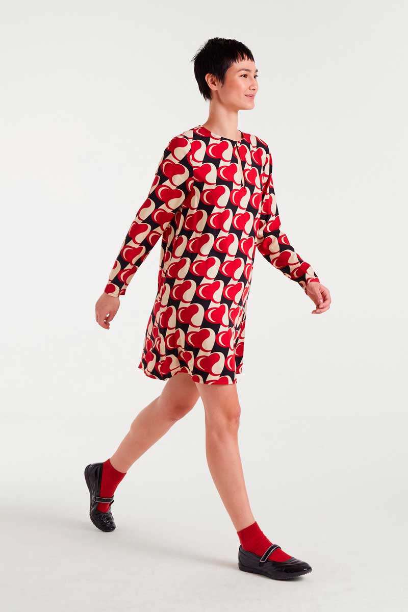 Κοντό φόρεμα από βισκόζη με τύπωμα Heart Attack.