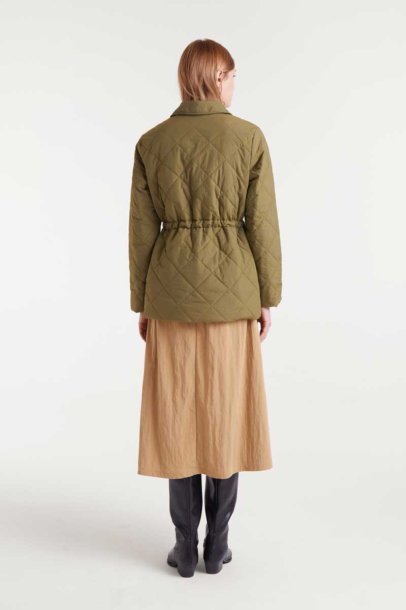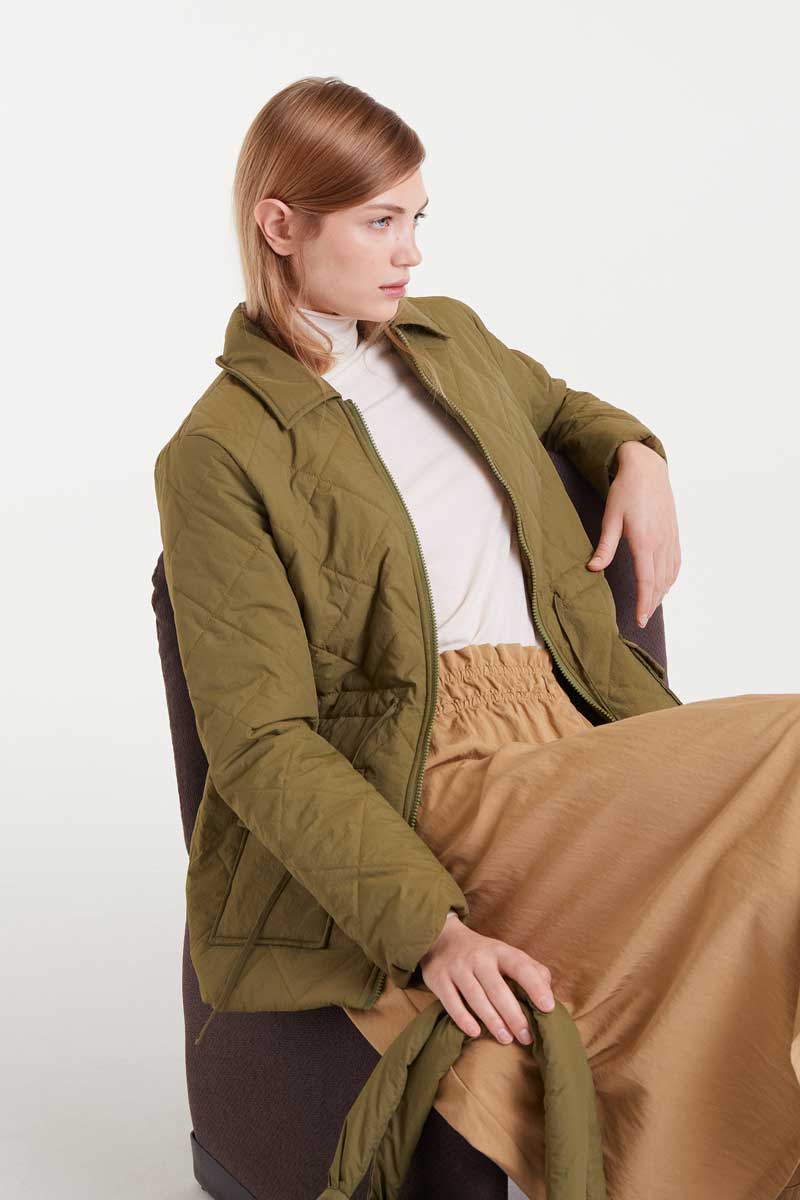 Κοντό παλτό με ελαφρύ καπιτονέ ύφασμα σε πράσινο χρώμα.