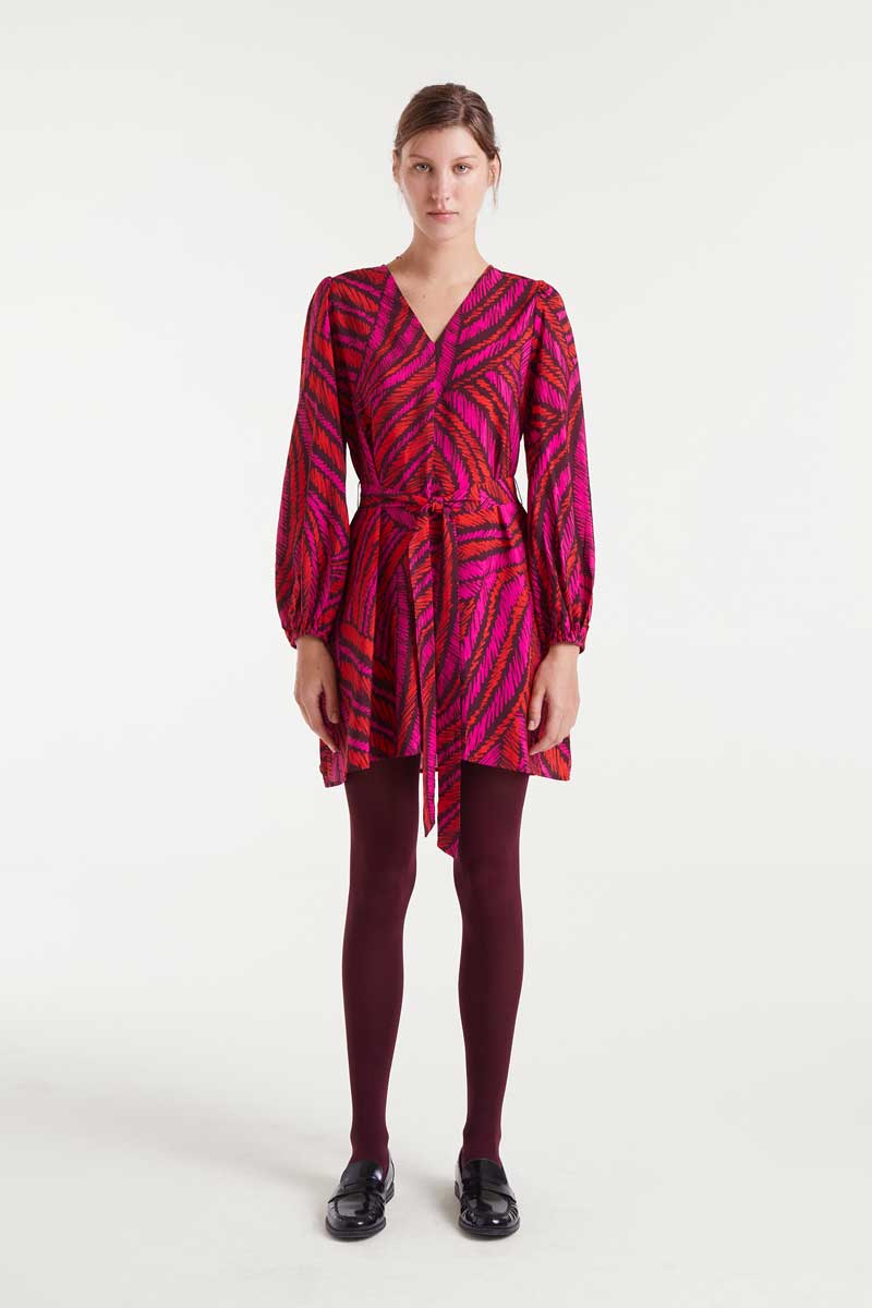 Κοντό, ελαφρύ κρεπ φόρεμα με τύπωμα fedora.