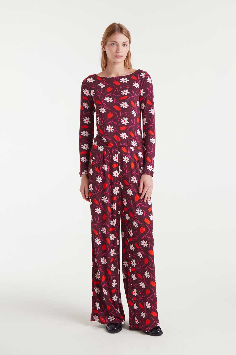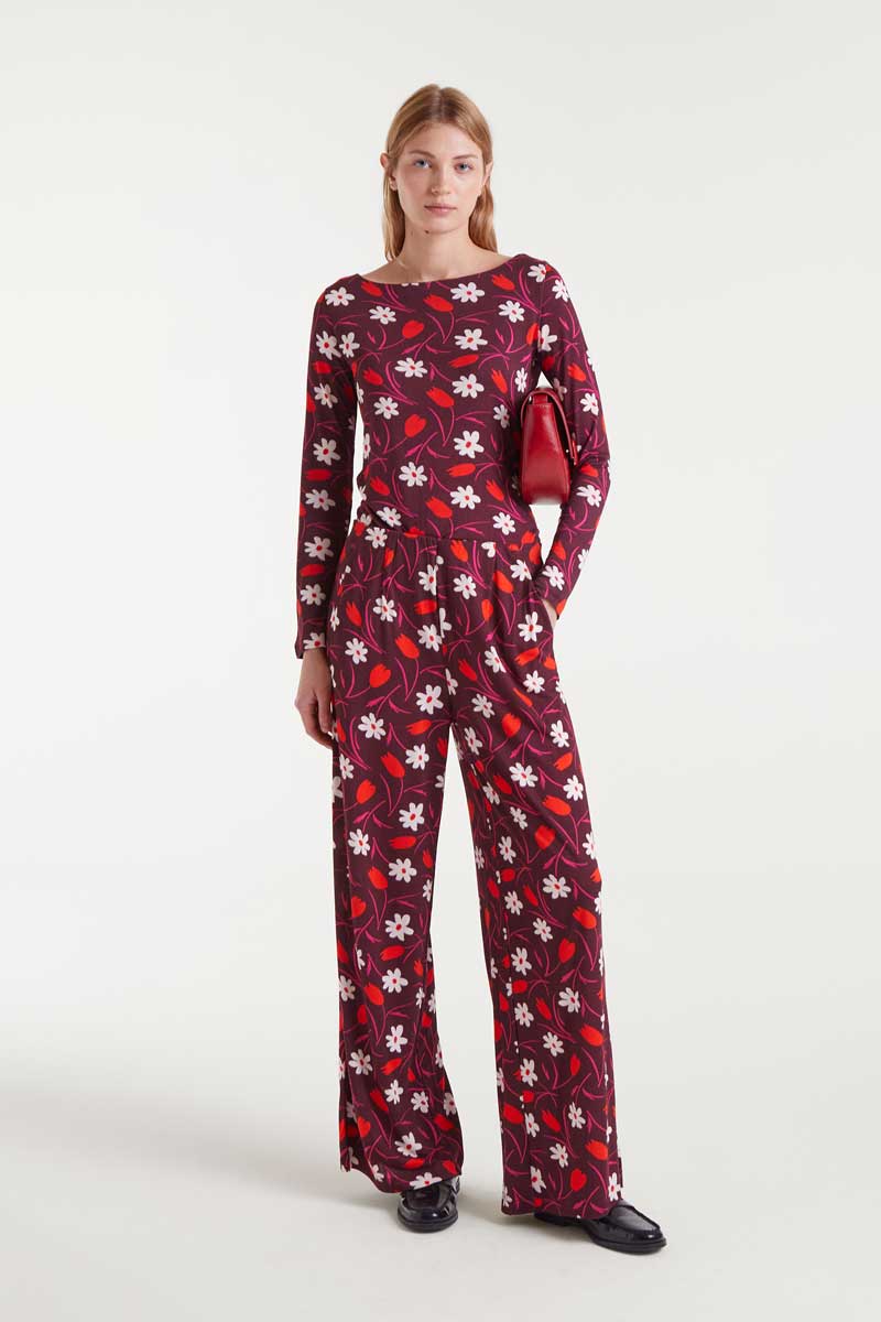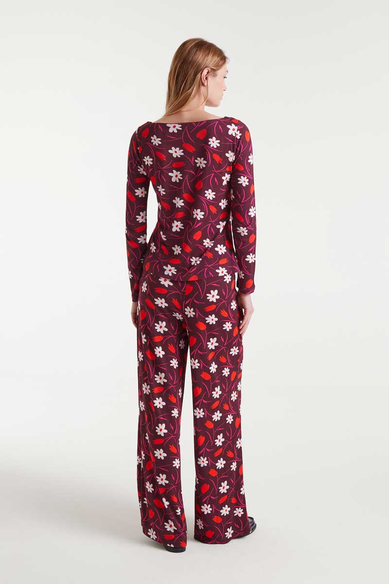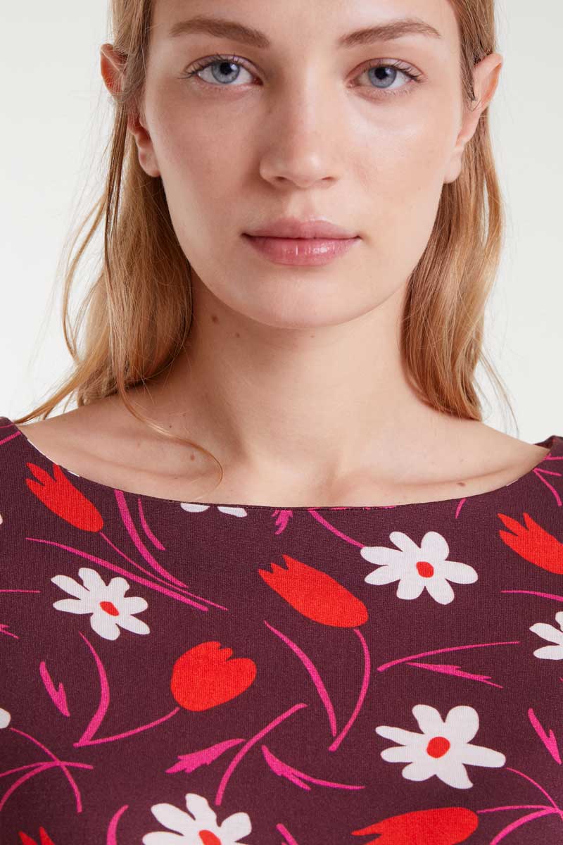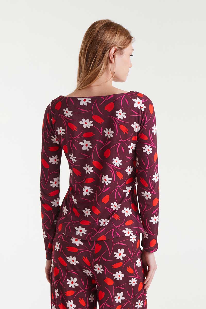 Μπλούζα με τύπωμα τουλίπας, ανοιχτή λαιμόκοψη και μακριά μανίκια.