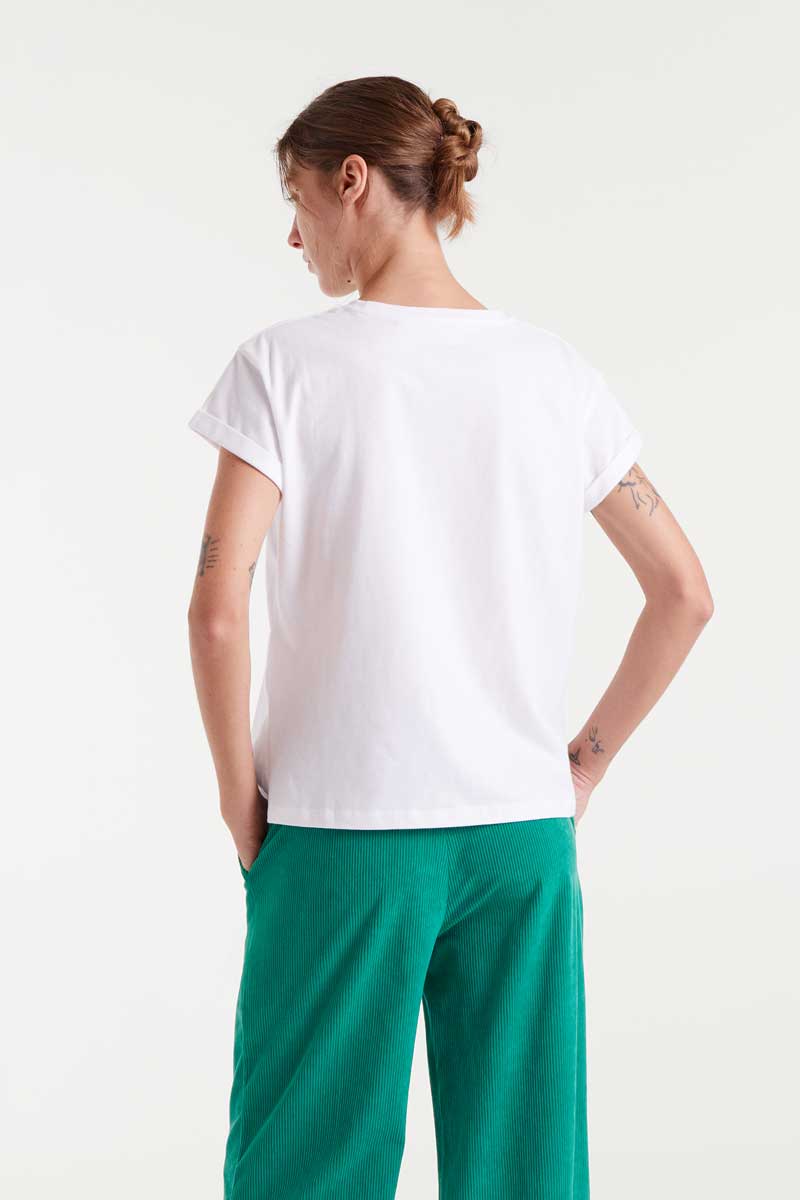 Λευκό T-Shirt από 100% βαμβάκι με στρογγυλή λαιμόκοψη και κοντά, σηκωμένα μανίκια