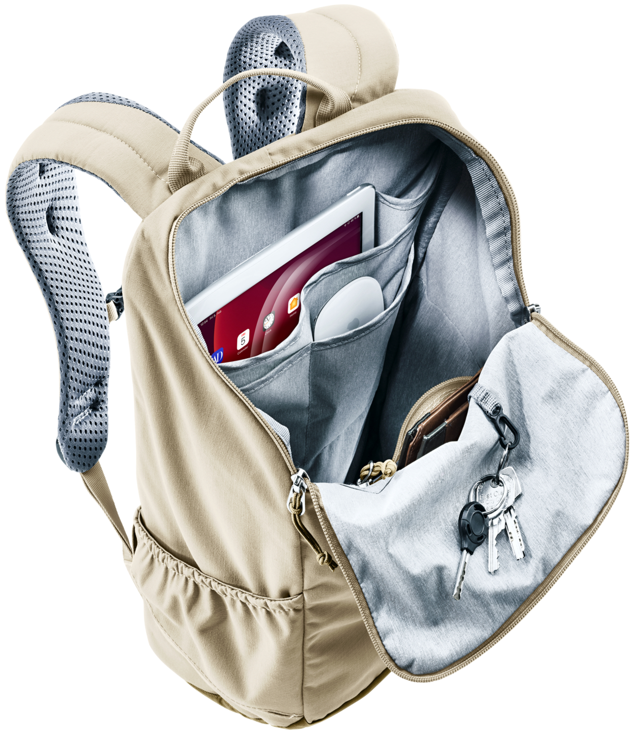 Με διάτρητους, εργονομικά διαμορφωμένους ιμάντες ώμου και με τη μειωμένη επιφάνεια επαφής του συστήματος πλάτης Airstripes της deuter,