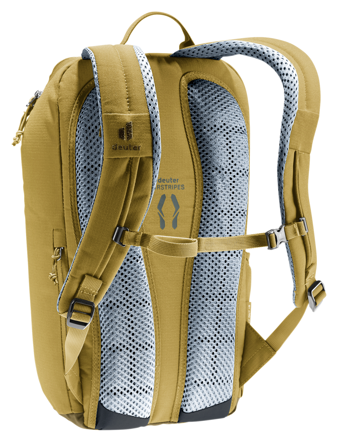 Με διάτρητους, εργονομικά διαμορφωμένους ιμάντες ώμου και με τη μειωμένη επιφάνεια επαφής του συστήματος πλάτης Airstripes της deuter,