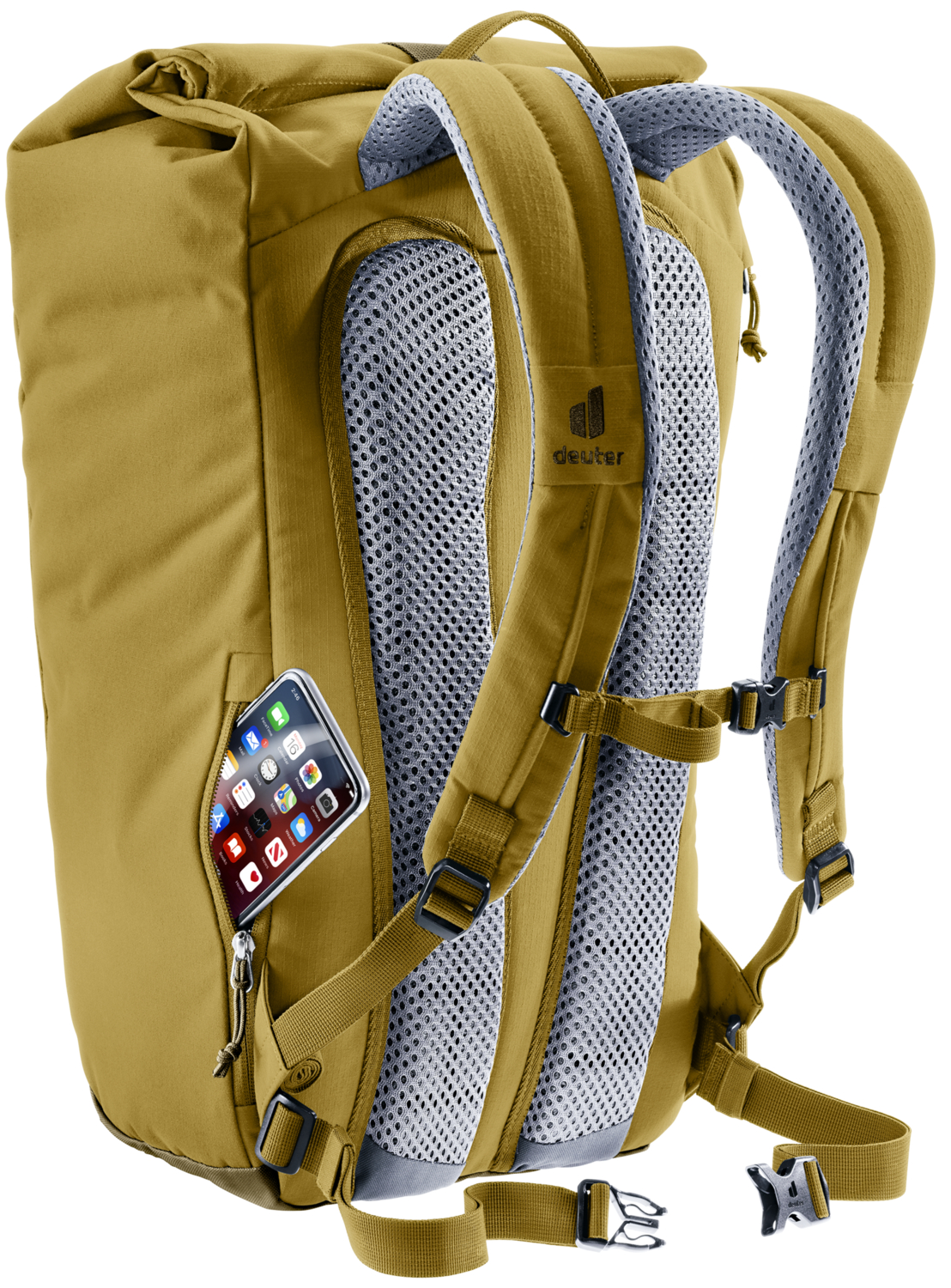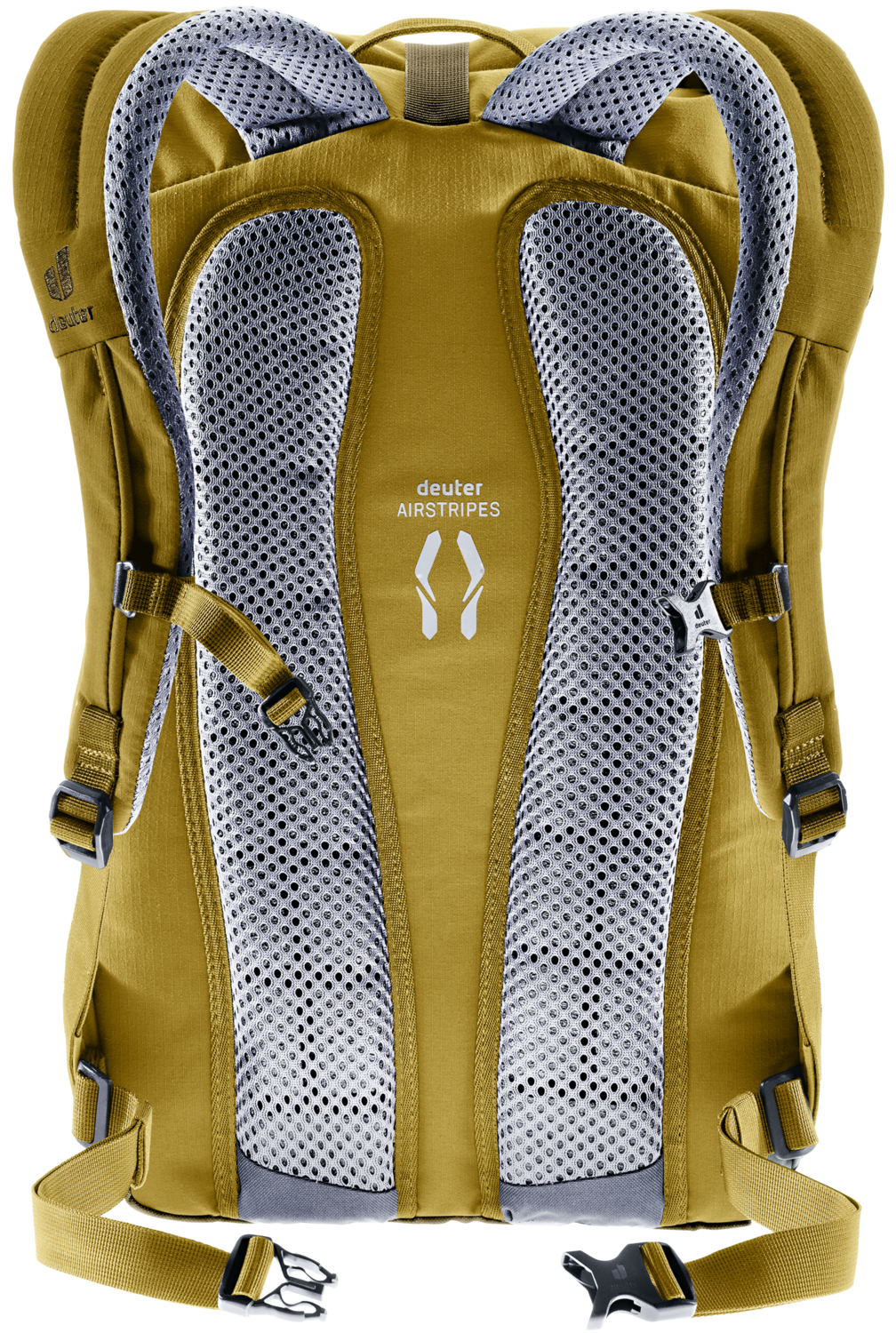 Με διάτρητους, εργονομικά διαμορφωμένους ιμάντες ώμου και με μειωμένη επαφή στην πλάτη χάρη στο σύστημα Airstripes της deuter.