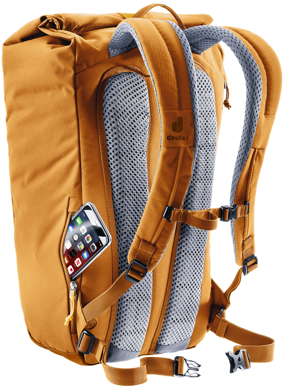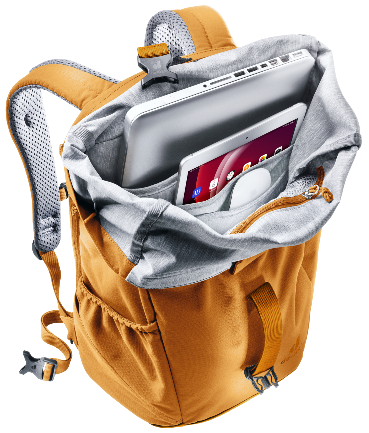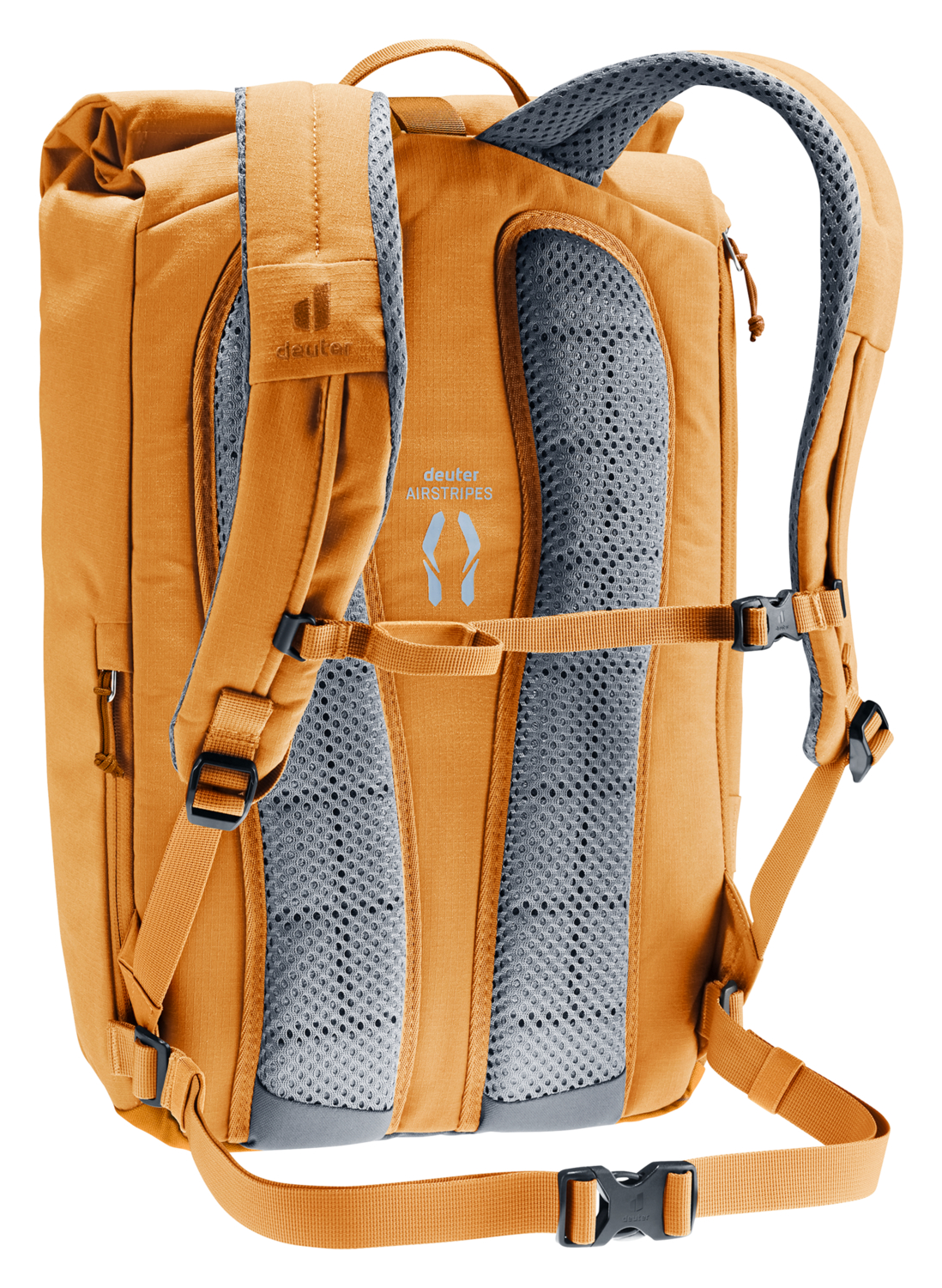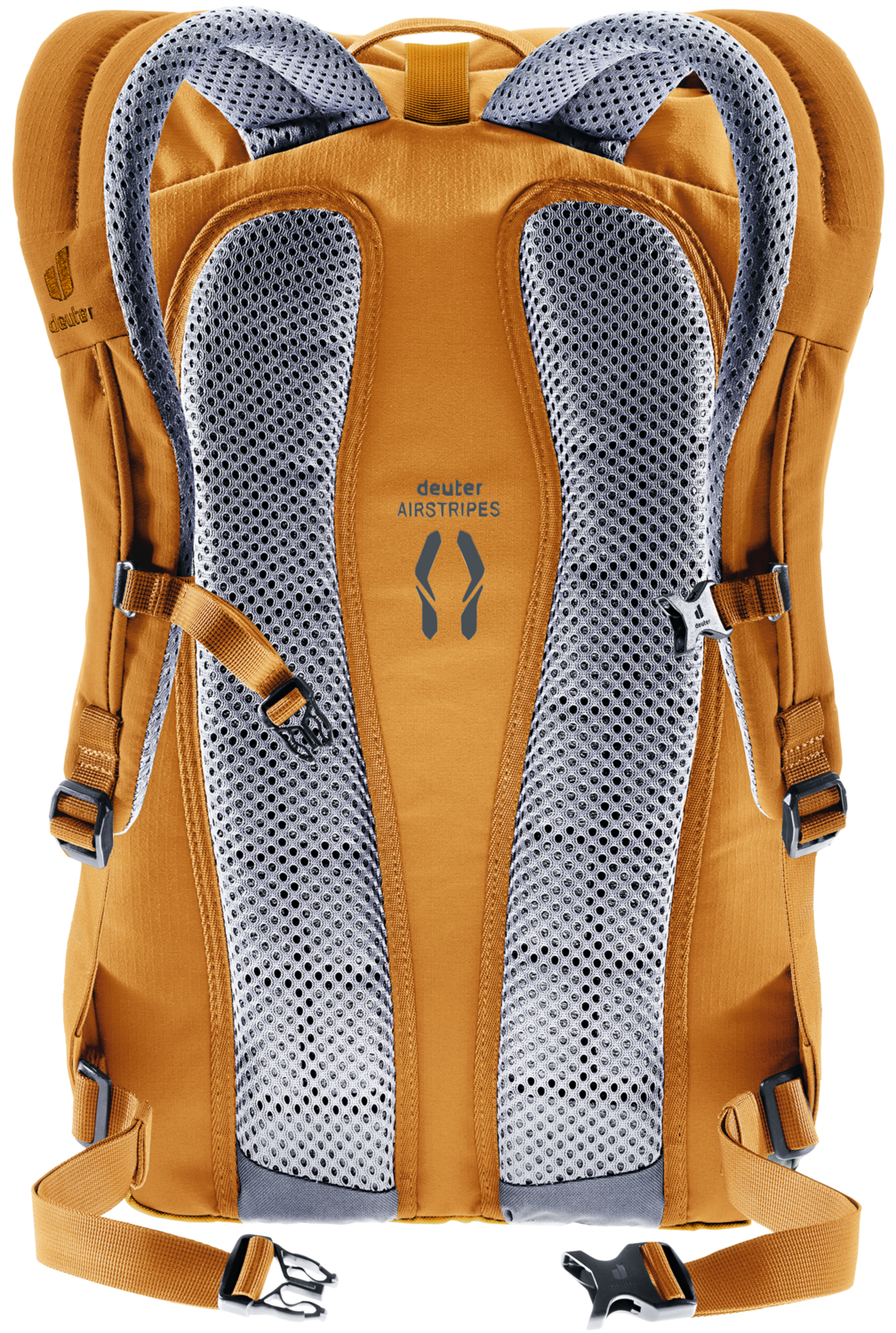 Με διάτρητους, εργονομικά διαμορφωμένους ιμάντες ώμου και με μειωμένη επαφή στην πλάτη χάρη στο σύστημα Airstripes της deuter.