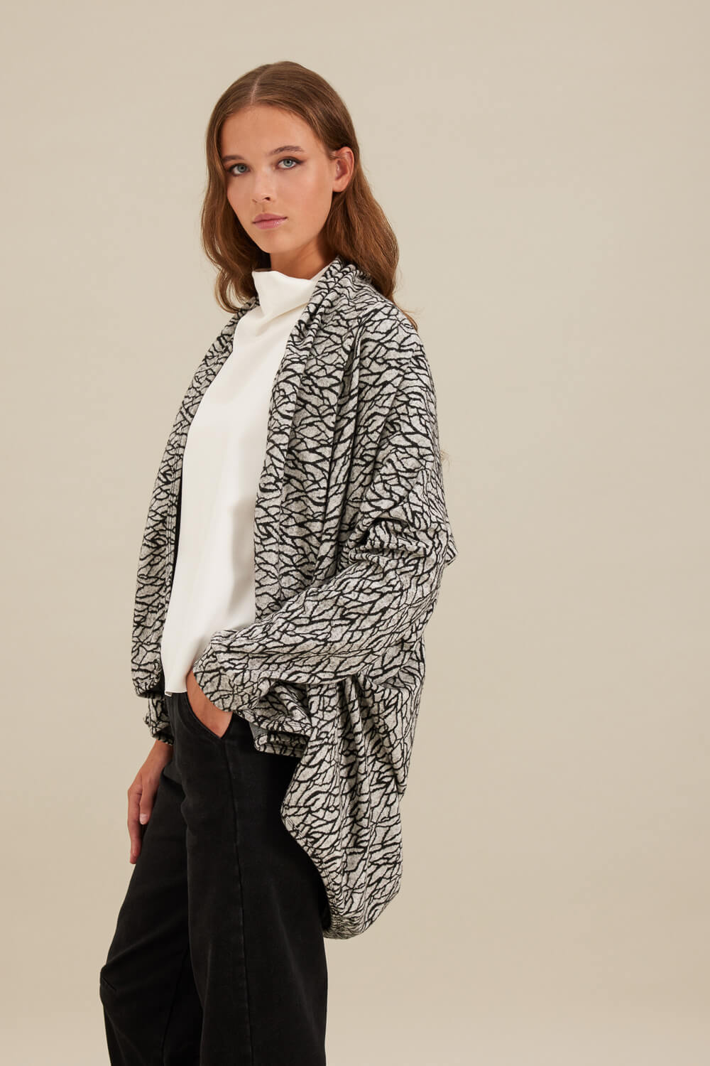 Σχεδιαστική ζακέτα τύπου κιμονό χωρίς κούμπωμα, που πίσω κάνει στρογγυλάδα,