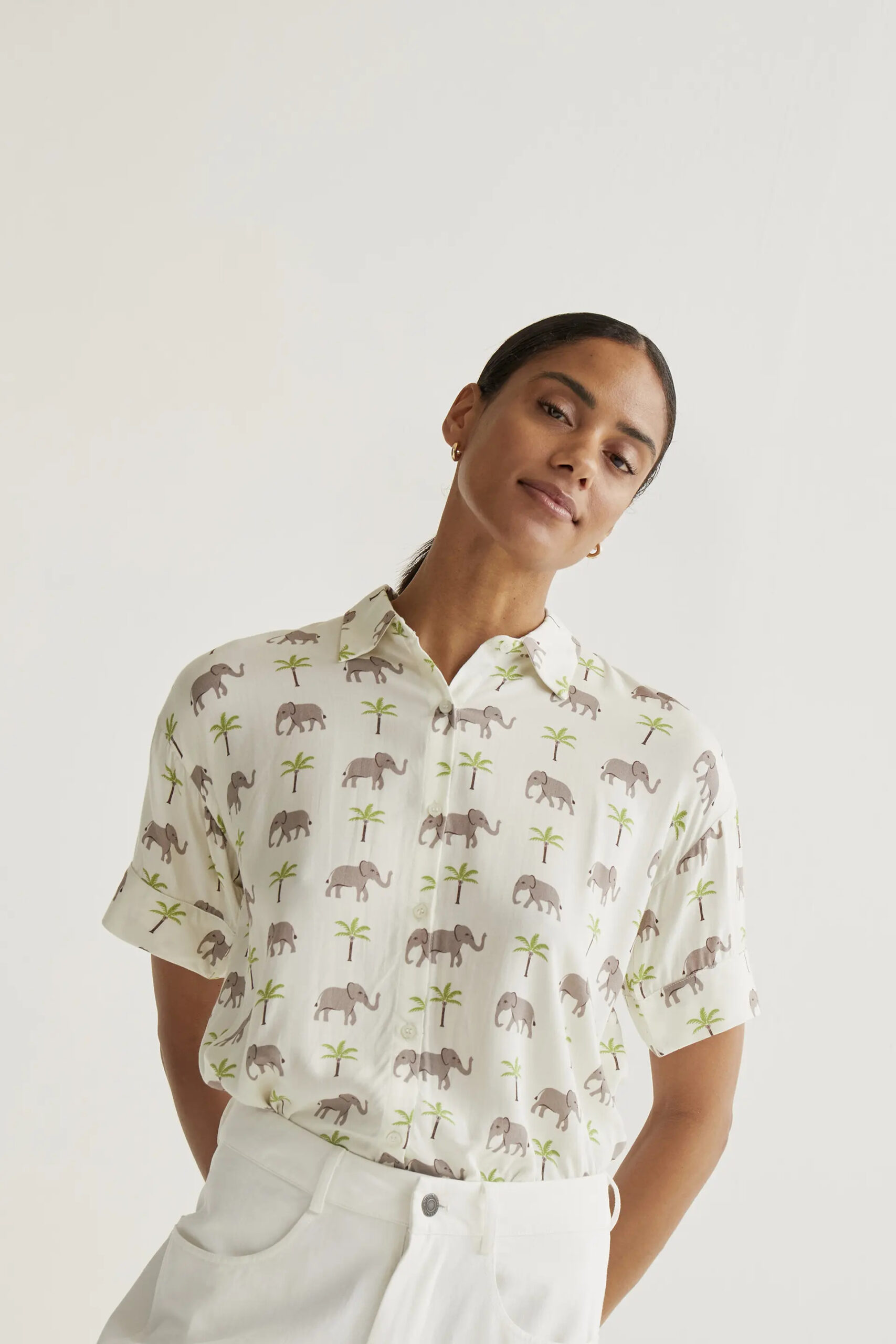 Πουκάμισο από ρεγιόν σε ύφασμα Lenzing Ecovero με Elephant print.