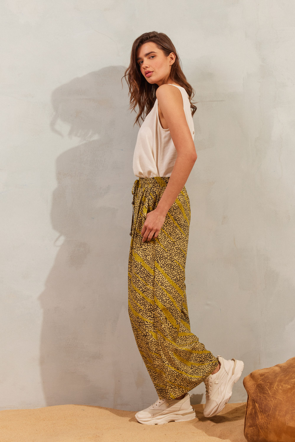 Παντελόνα ψηλόμεση με ανάλαφρη αίσθηση και ιδιαίτερο print