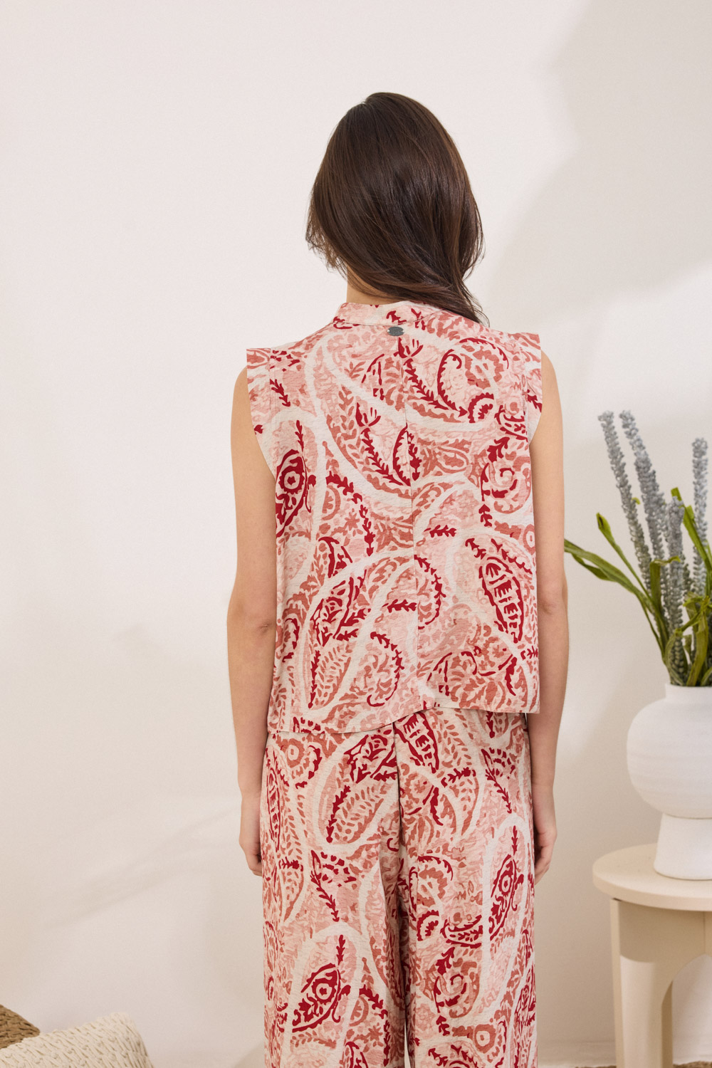 Αμάνικο πουκάμισο τύπου γιλέκο, με αυστηρή γεωμετρία και σύγχρονη αισθητική.