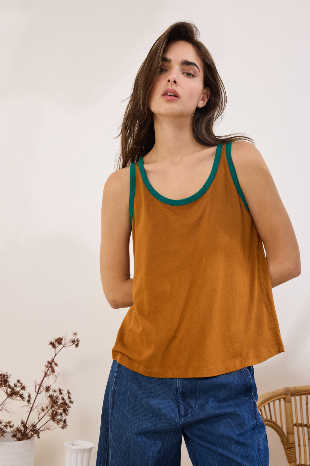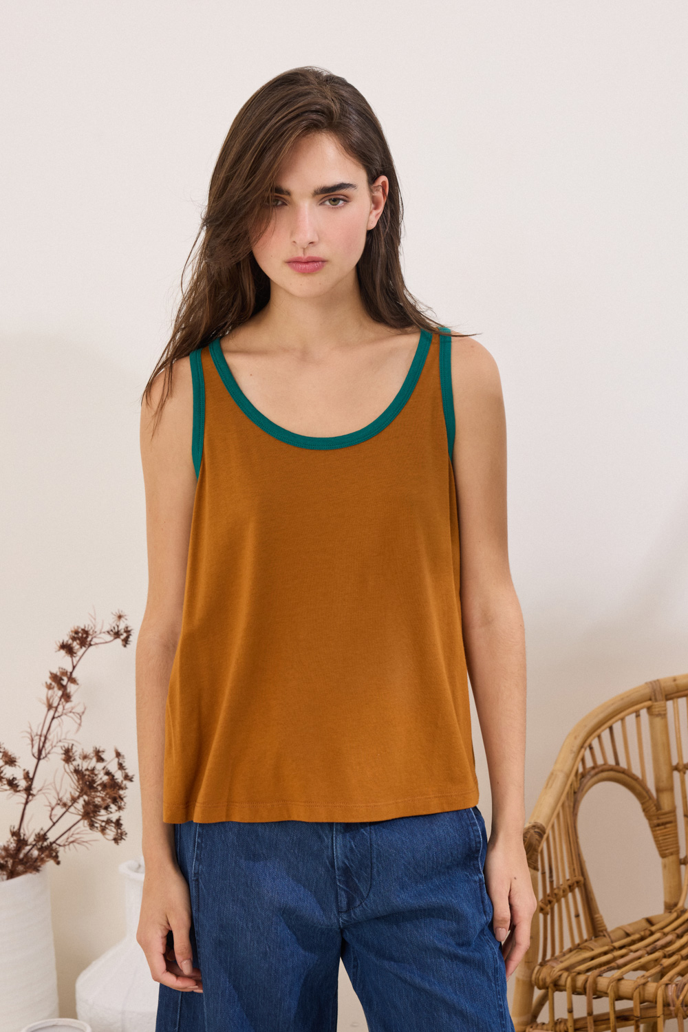 Αμάνικο, με ανοιχτή λαιμόκοψη και ρέλια σε χρωματική αντίθεση