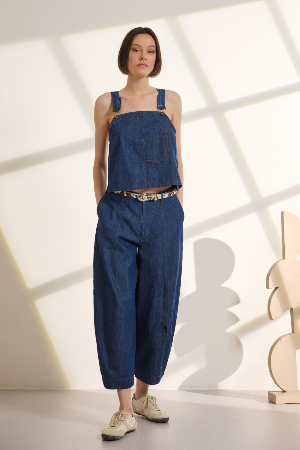 Τζιν παντελόνι cropped από 100% βαμβάκι σε mid waist γραμμή και baggy εφαρμογή.