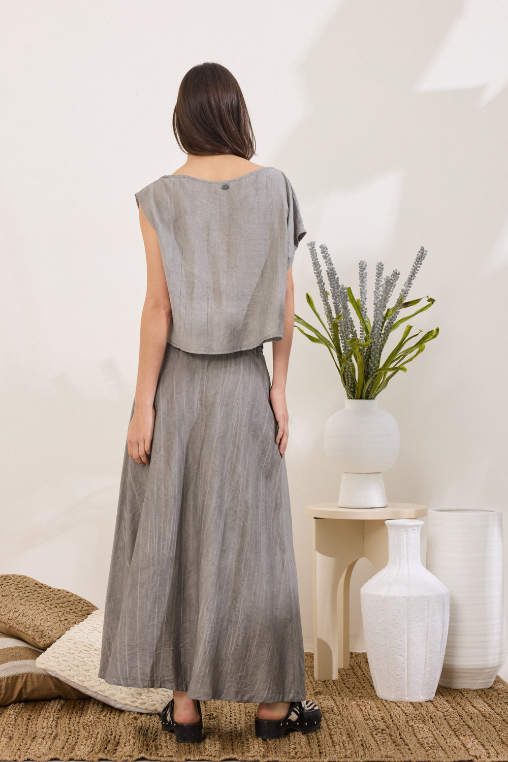 Μακριά φούστα σε κομψή εβαζέ γραμμή, σχεδιασμένη για άνεση και ανάλαφρη κίνηση.