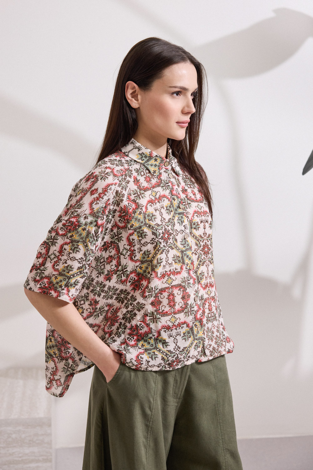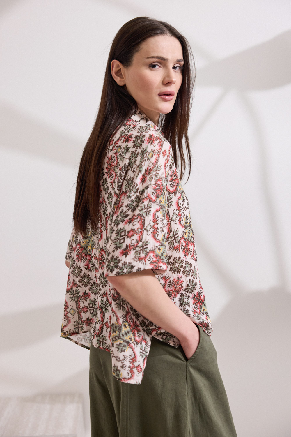Πουκάμισο από 100% βαμβακερή γάζα με γιακά και κοντό μανίκι.