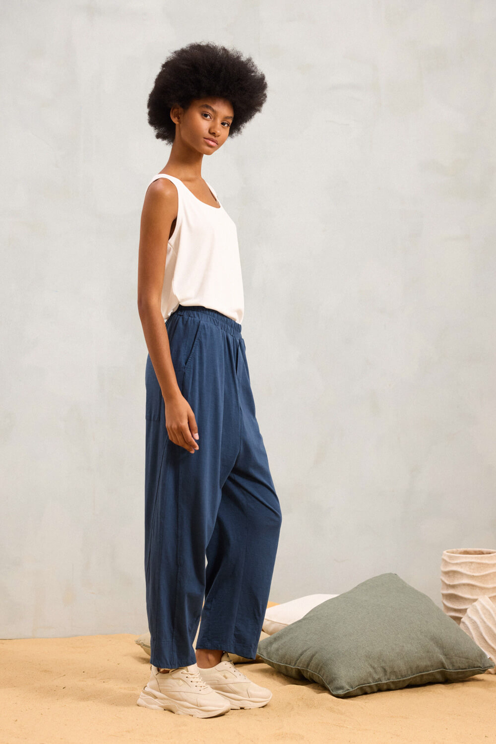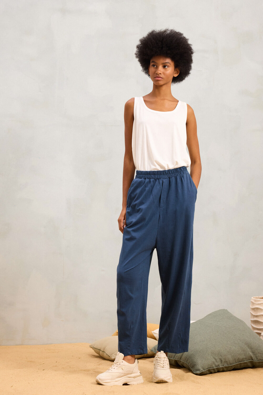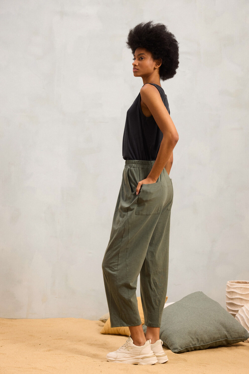 Παντελόνι από βαμβακερή φλάμα σε cropped μήκος και χαλαρή, σύγχρονη γραμμή.