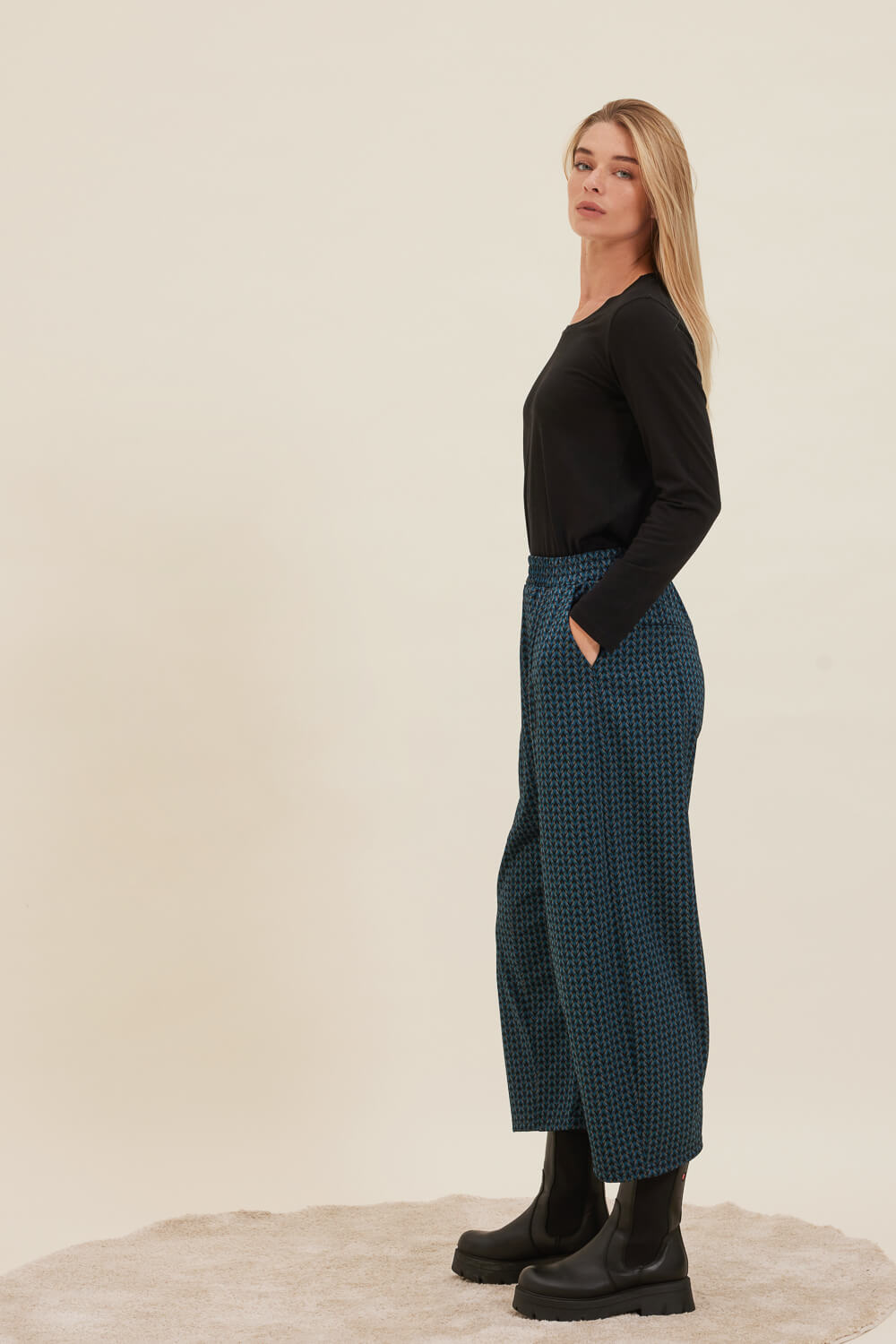 Cropped παντελόνι σε φαρδιά γραμμή με χαλαρό καβάλο, λάστιχο στη μέση,