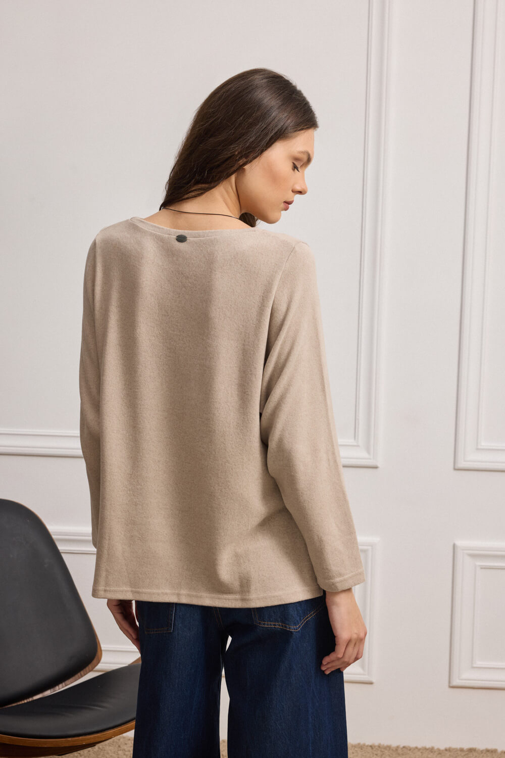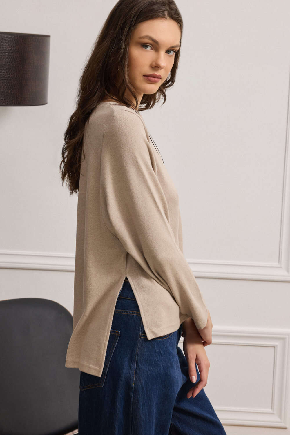 Μπλούζα με μακρύ μανίκι και στρογγυλή λαιμόκοψη, σχεδιασμένη σε άνετη γραμμή για καθημερινή ευελιξία.