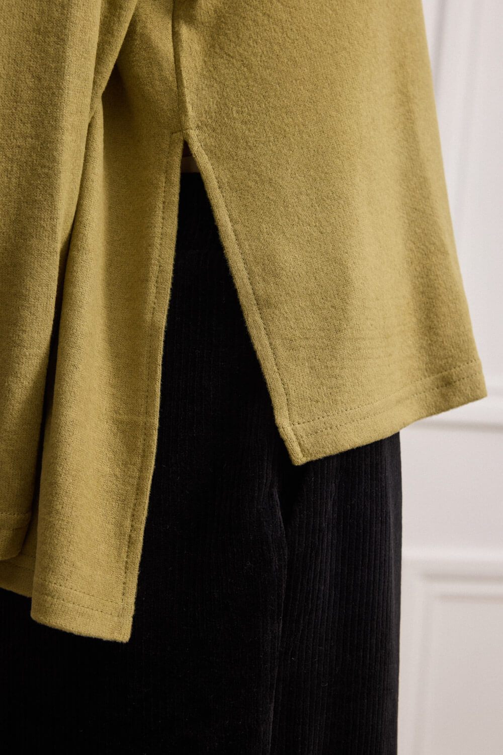 Το ασύμμετρο τελείωμα με διακριτικά ανοίγματα στα πλαϊνά προσθέτει κίνηση,