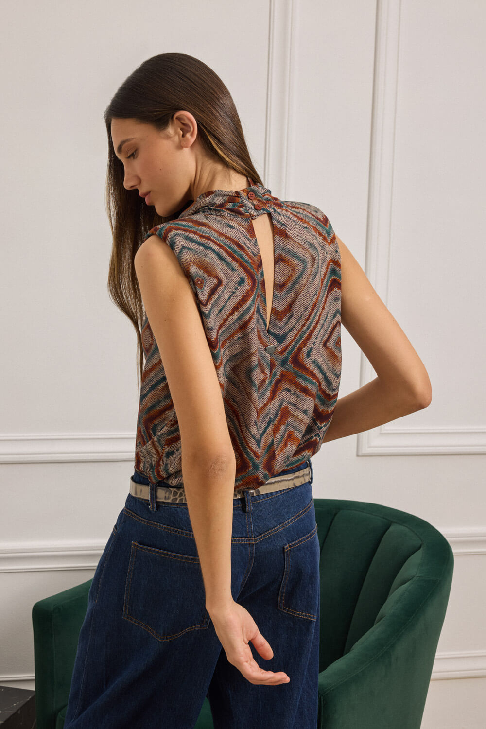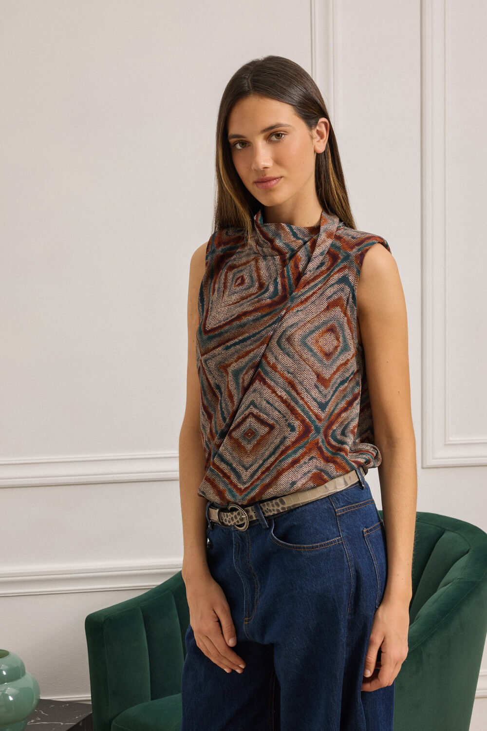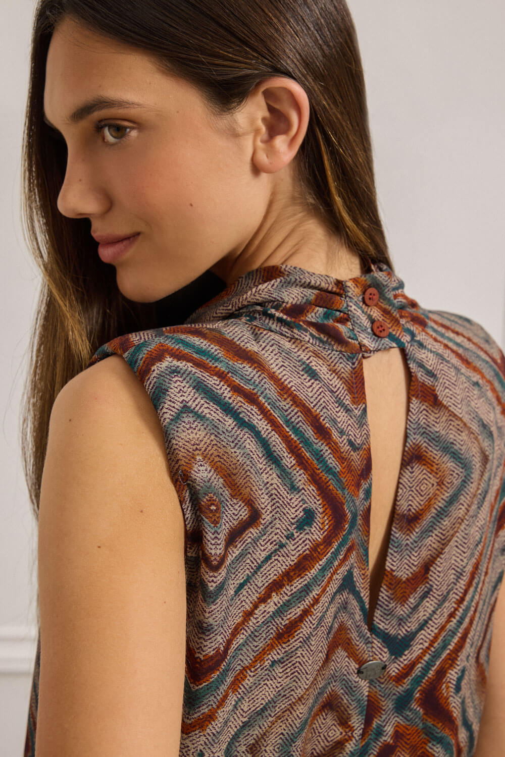 Αμάνικο τοπ από από 100% βισκόζη με επαναλαμβανόμενο γεωμετρικό μοτίβο.