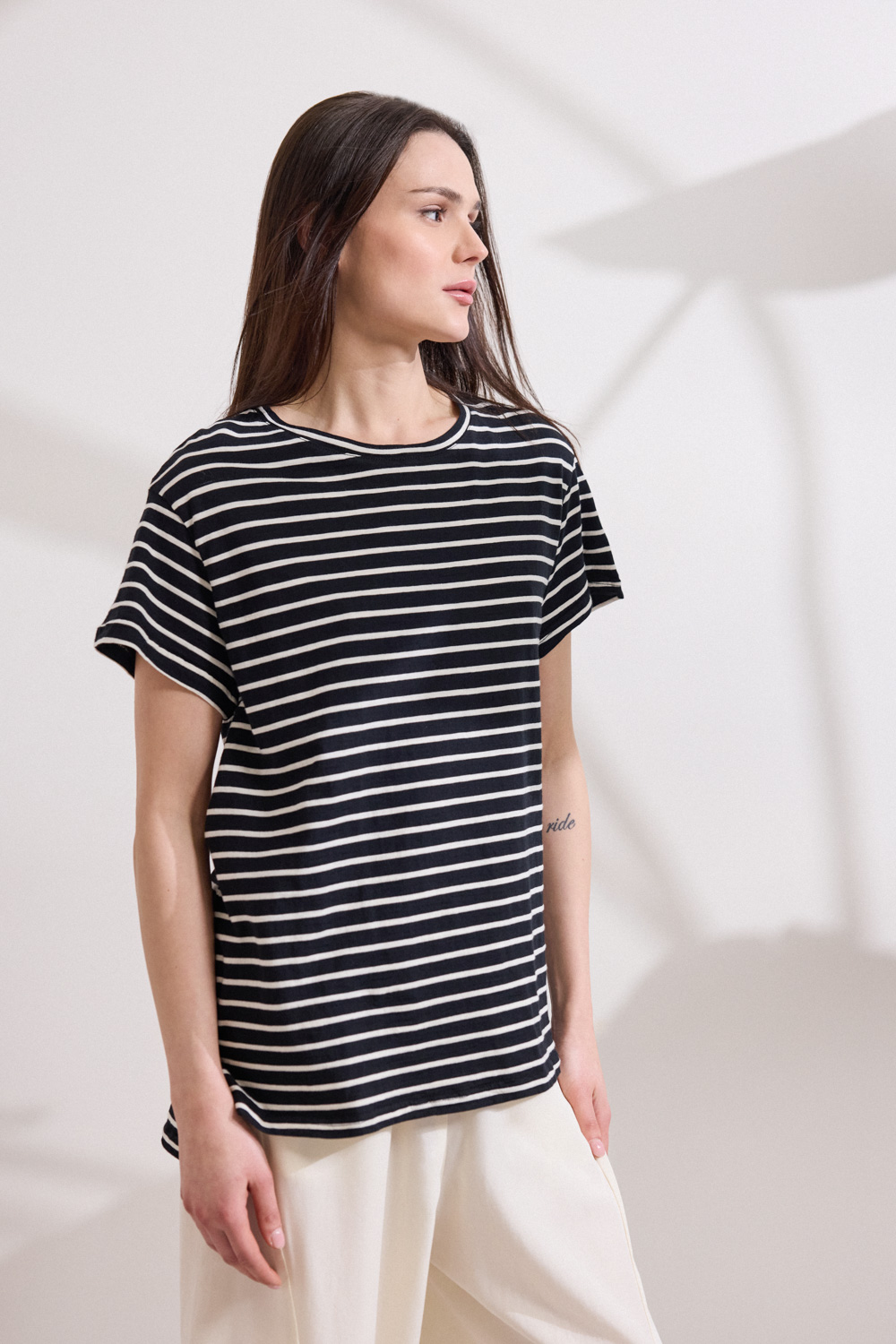 T-SHIRT jersey από 100% cotton με κοντό μανίκι και στρογγυλή λαιμόκοψη.