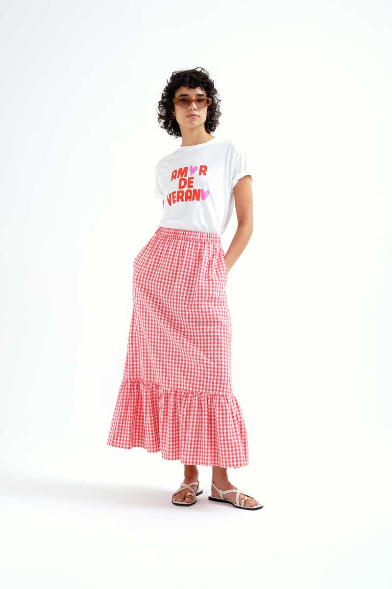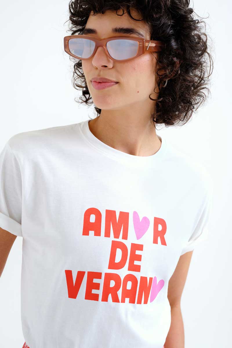 Μπλούζα από 100% βαμβάκι με τύπωμα “Summer Love”. Στρογγυλή λαιμόκοψη και κοντά μανίκια.