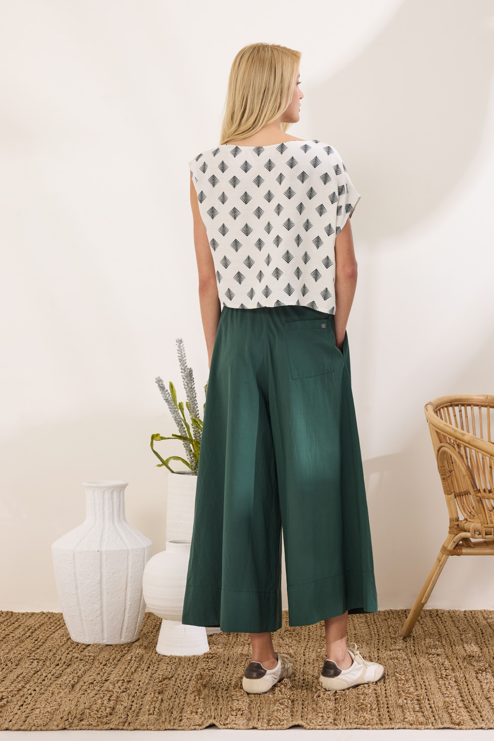 Παντελόνι zip culotte από βαμβακερό ύφασμα με δυναμικό σχεδιαστικό χαρακτήρα.