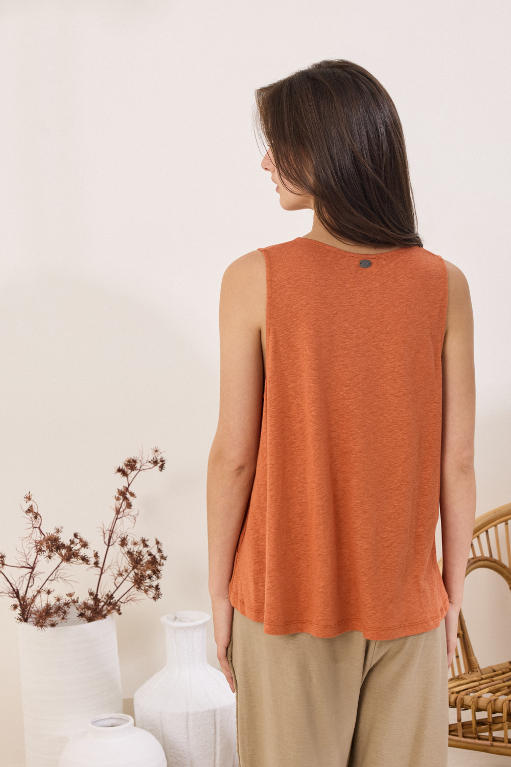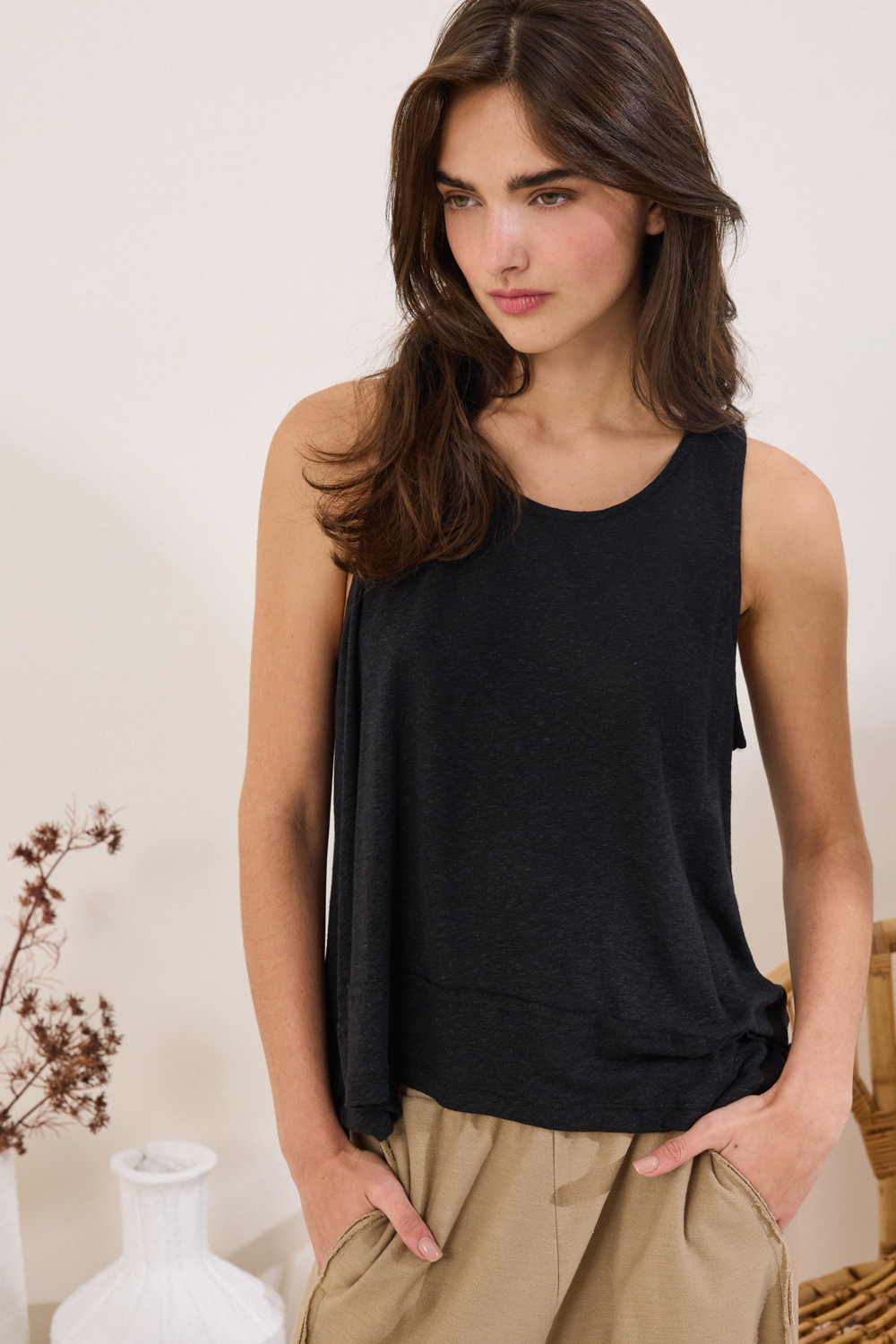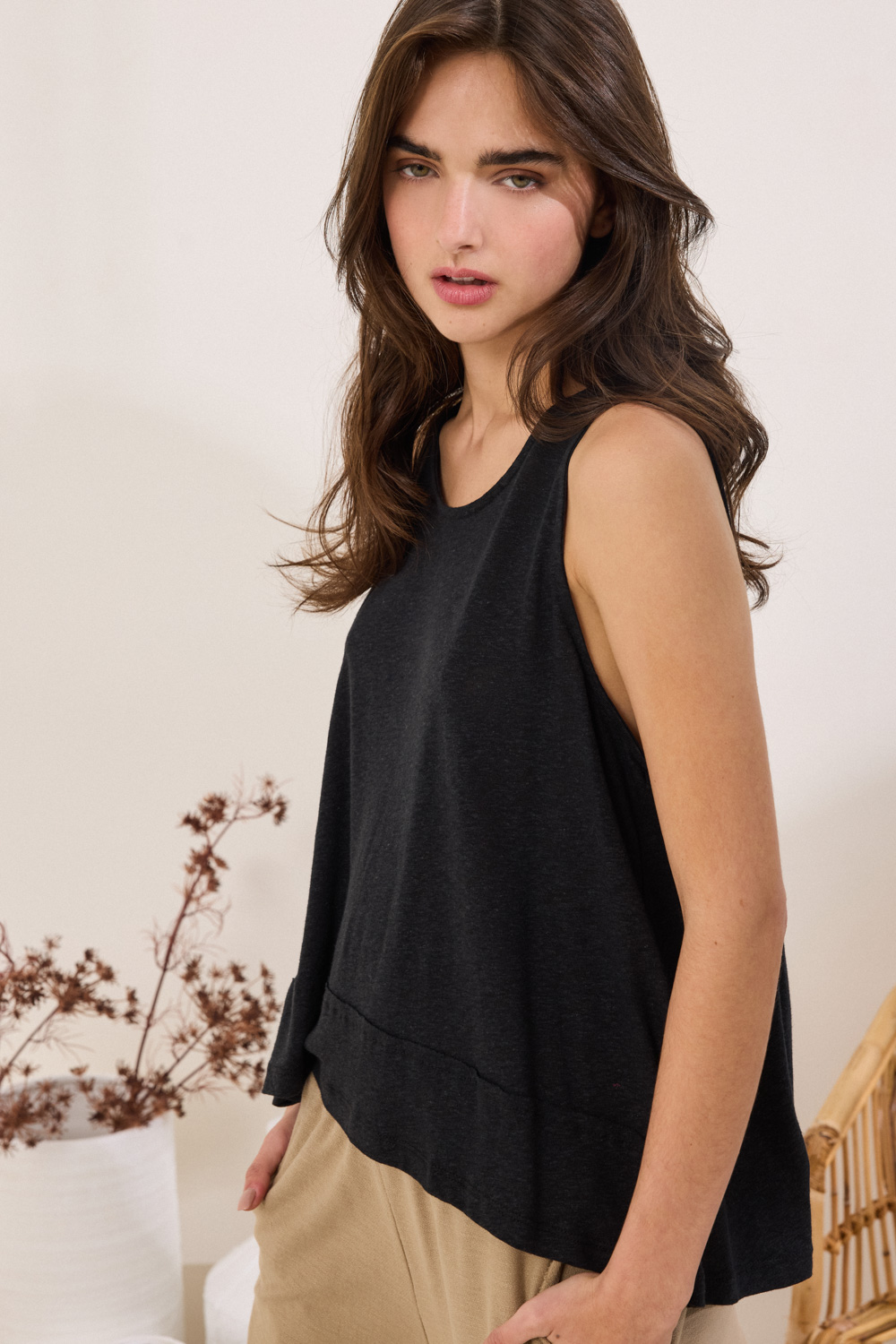 Μπλούζα αμάνικη με στρογγυλή λαιμόκοψη και ασύμμετρη γραμμή.