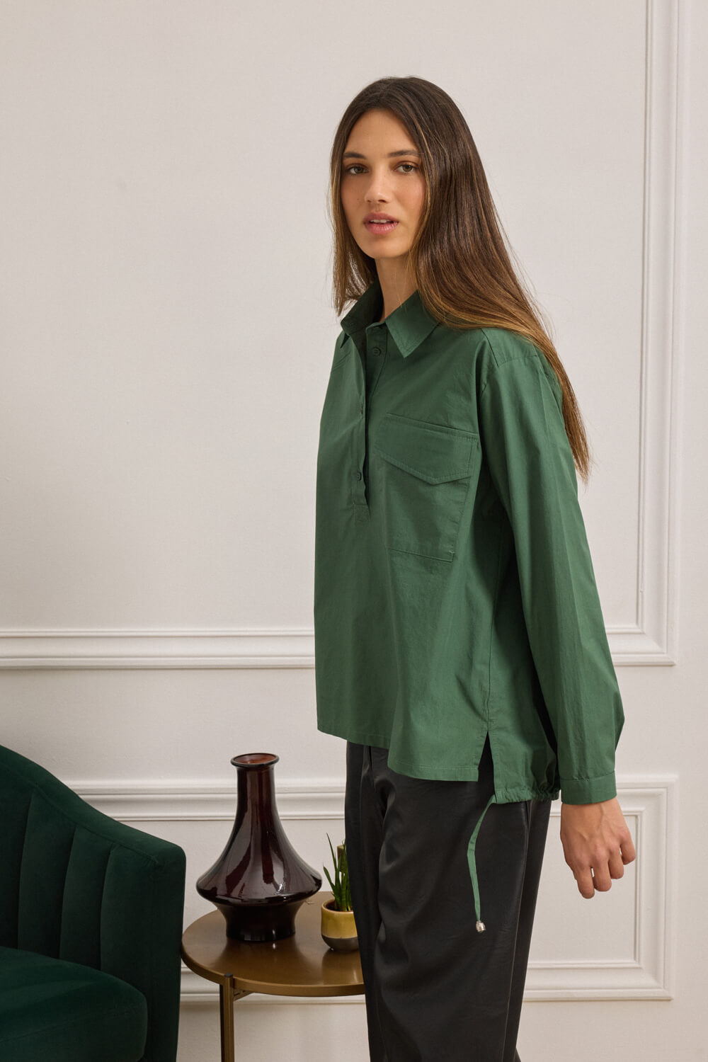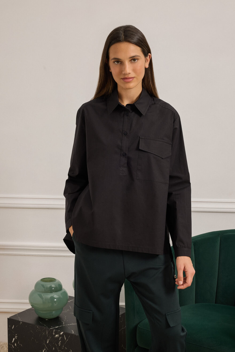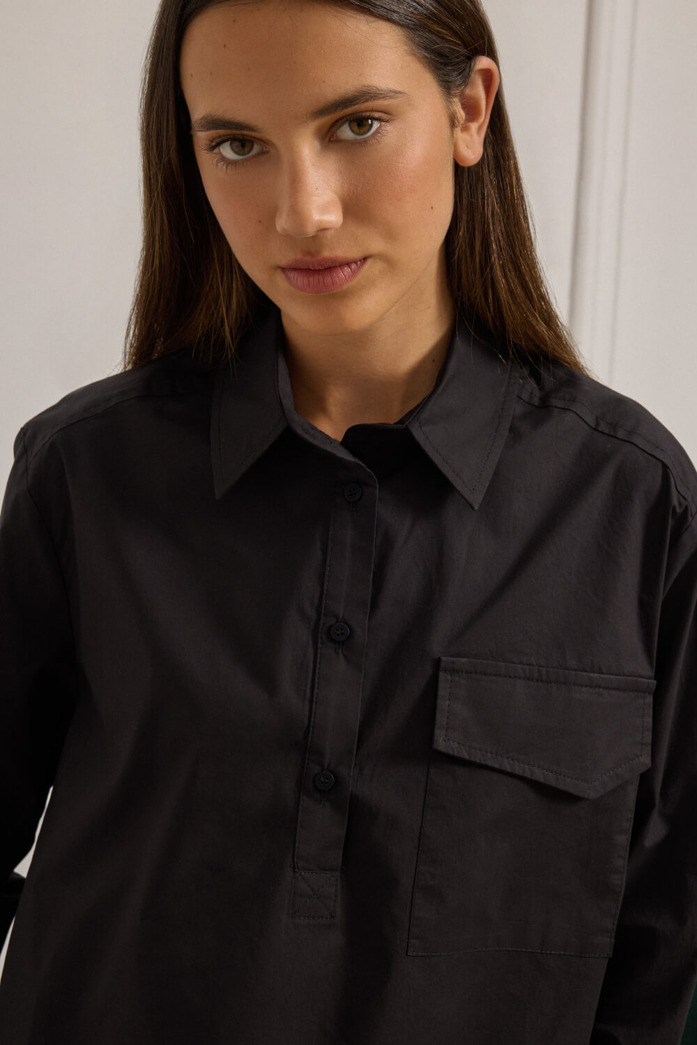 Φαρδιά σχεδιαστική τουνίκ με μακριά μανίκια από βαμβακερή ποπλίνα