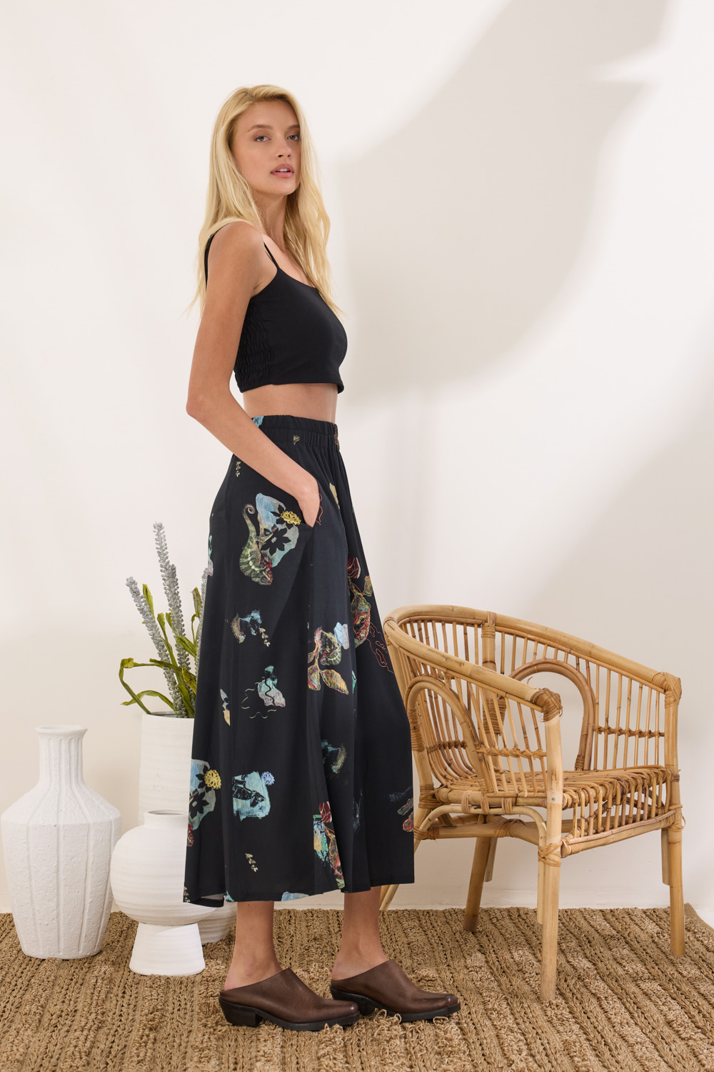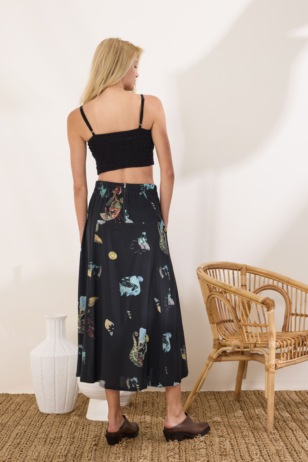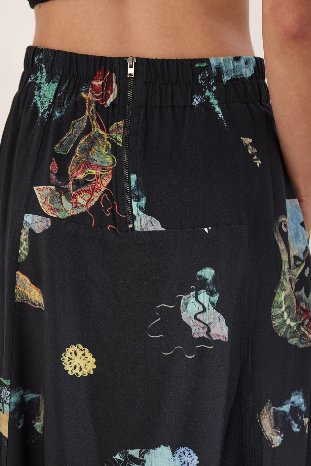 Midi φούστα σε εβαζέ γραμμή, με εντυπωσιακό print από 100% rayon.